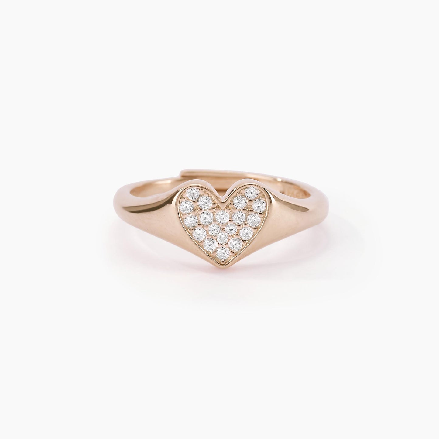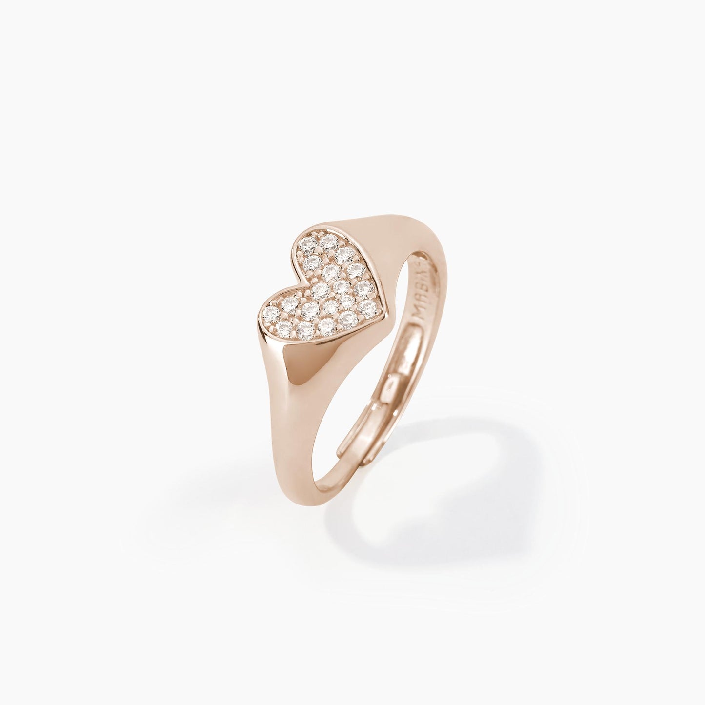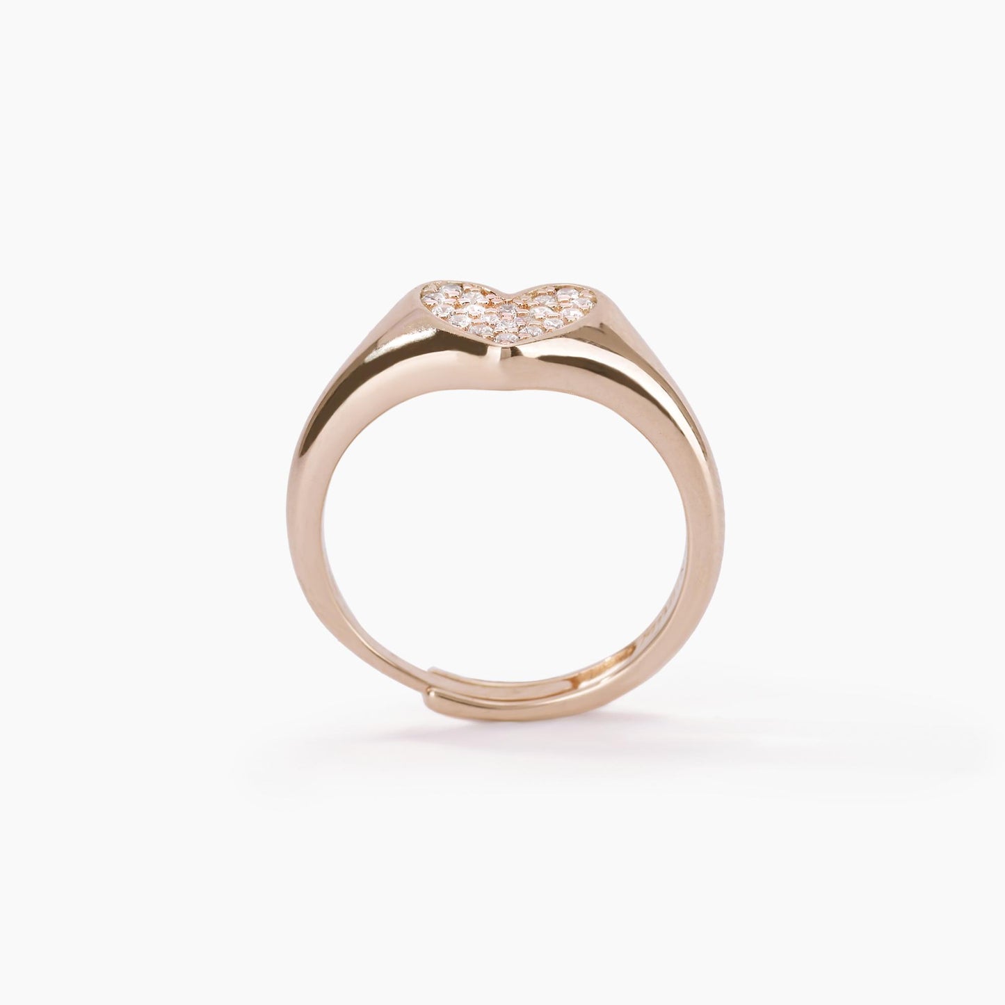 Anello chevalier in argento placcato oro rosa 18k con cuore in pavé di zirconi.