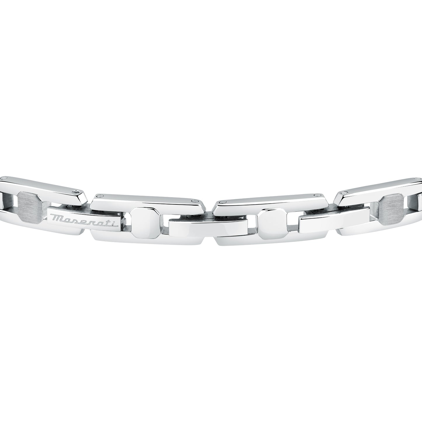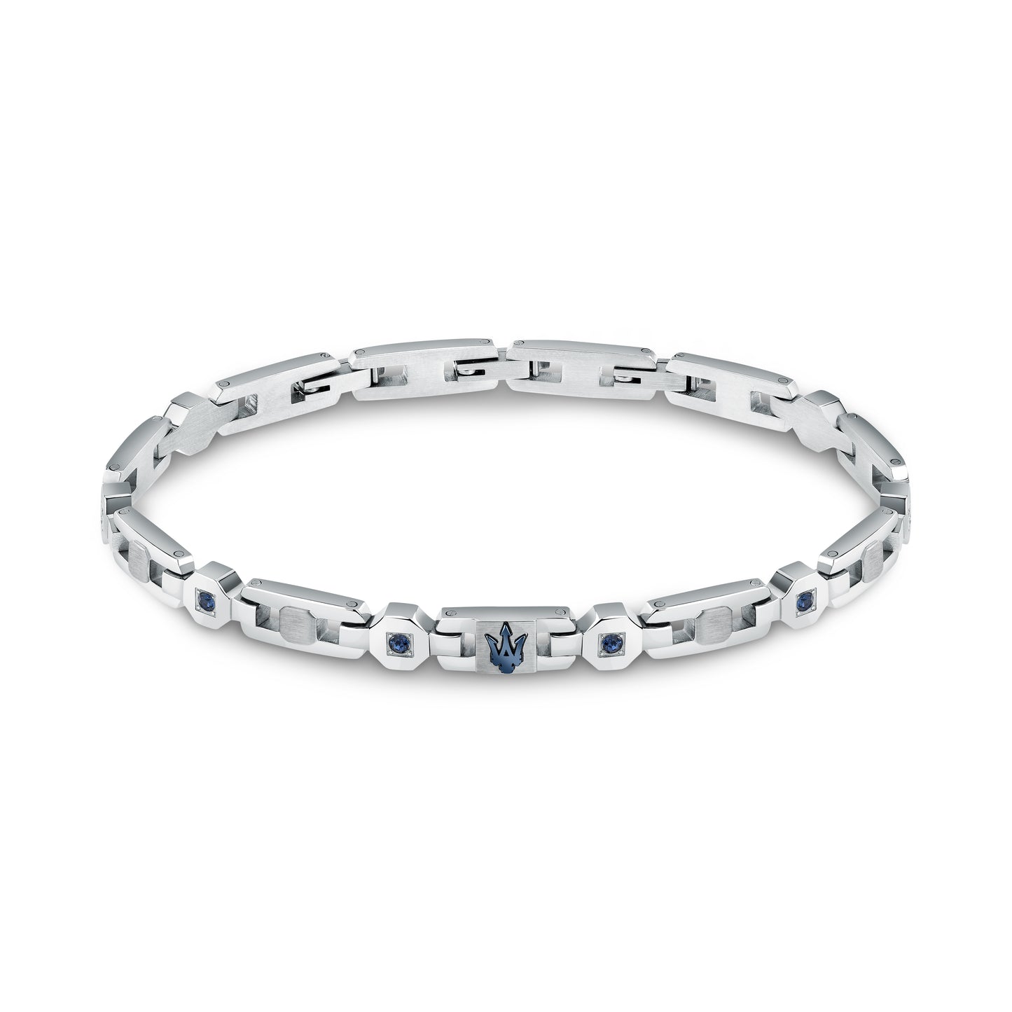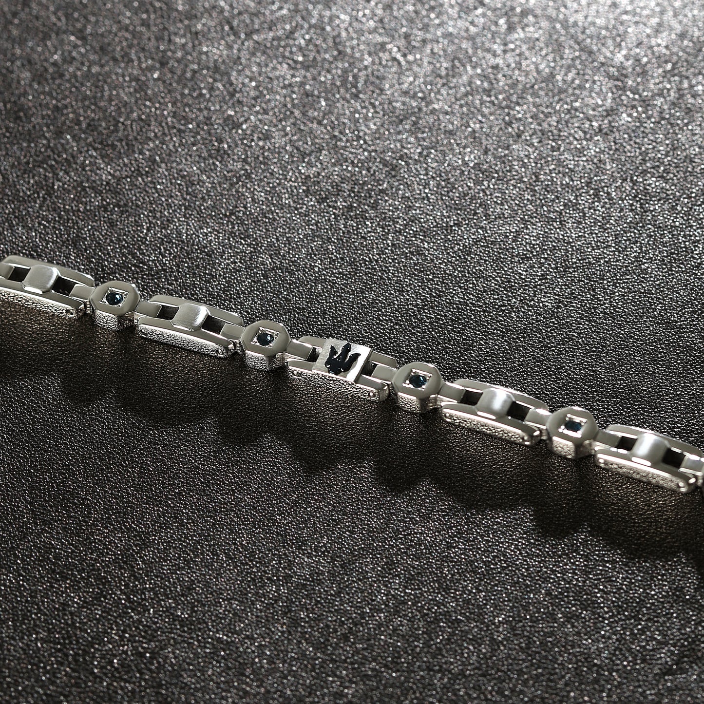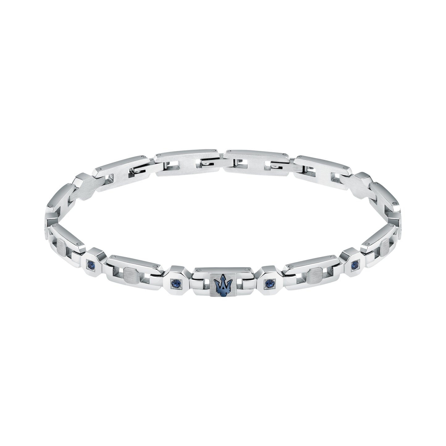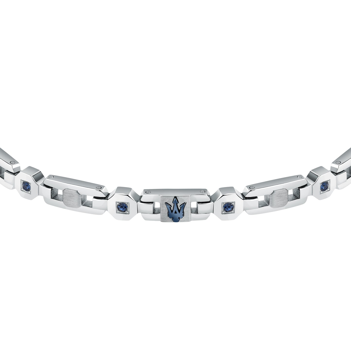 Bracciale realizzato in acciaio inossidabile e pietra, di colore azzurro. Misura gioiello: 18+3,5cm.