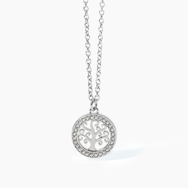 Girocollo in acciaio 316L con catena forzatina 2 mm, pendente Ø 16.5 mm con albero della vita e cristalli Ø 1.5 mm, lunghezza 43 cm