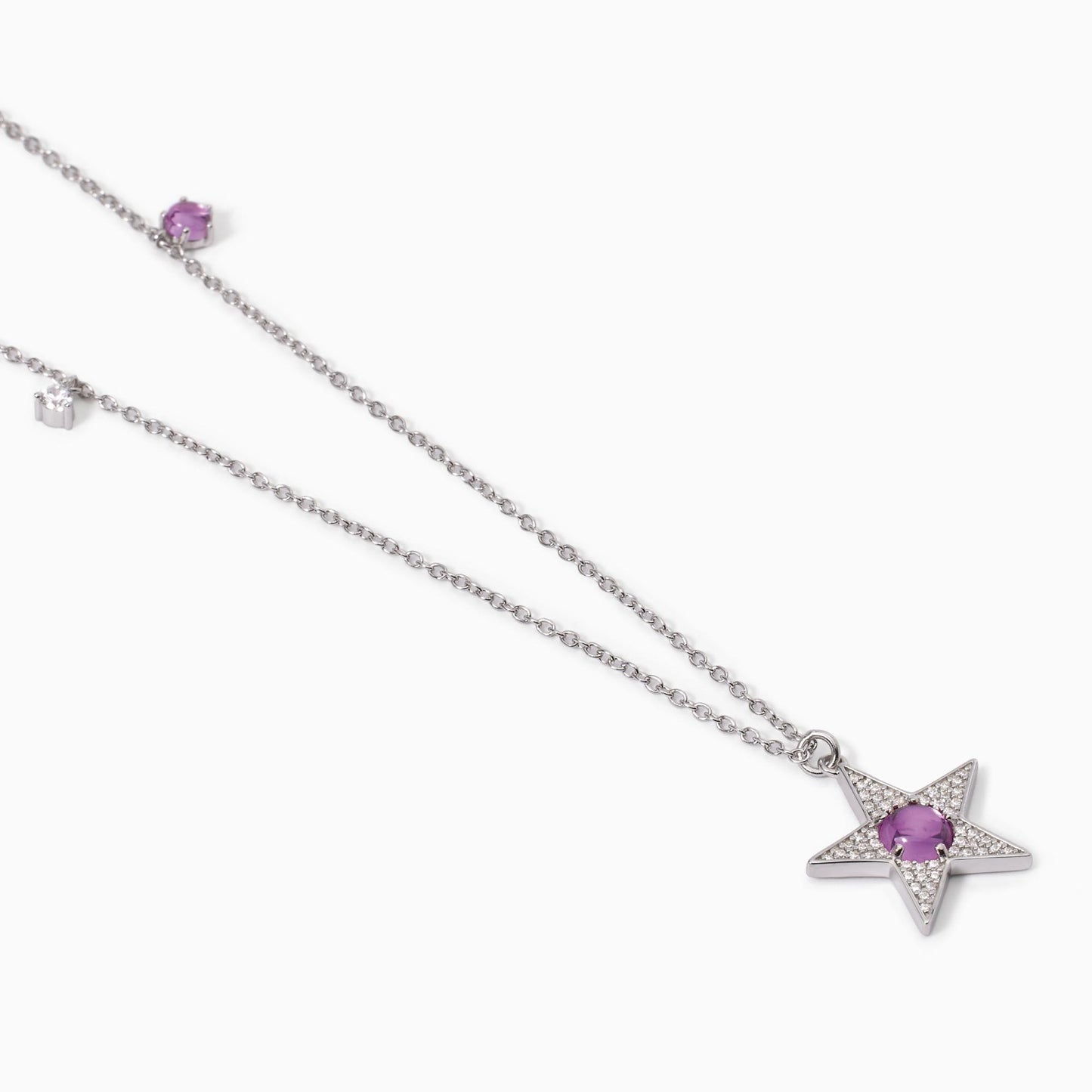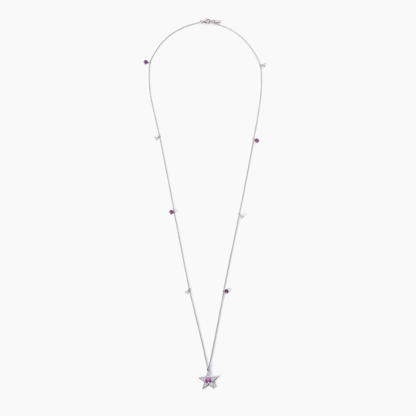 Silver necklace with forzatina chain, white zircon inserts and star-shaped pendant with central synthetic tourmaline.