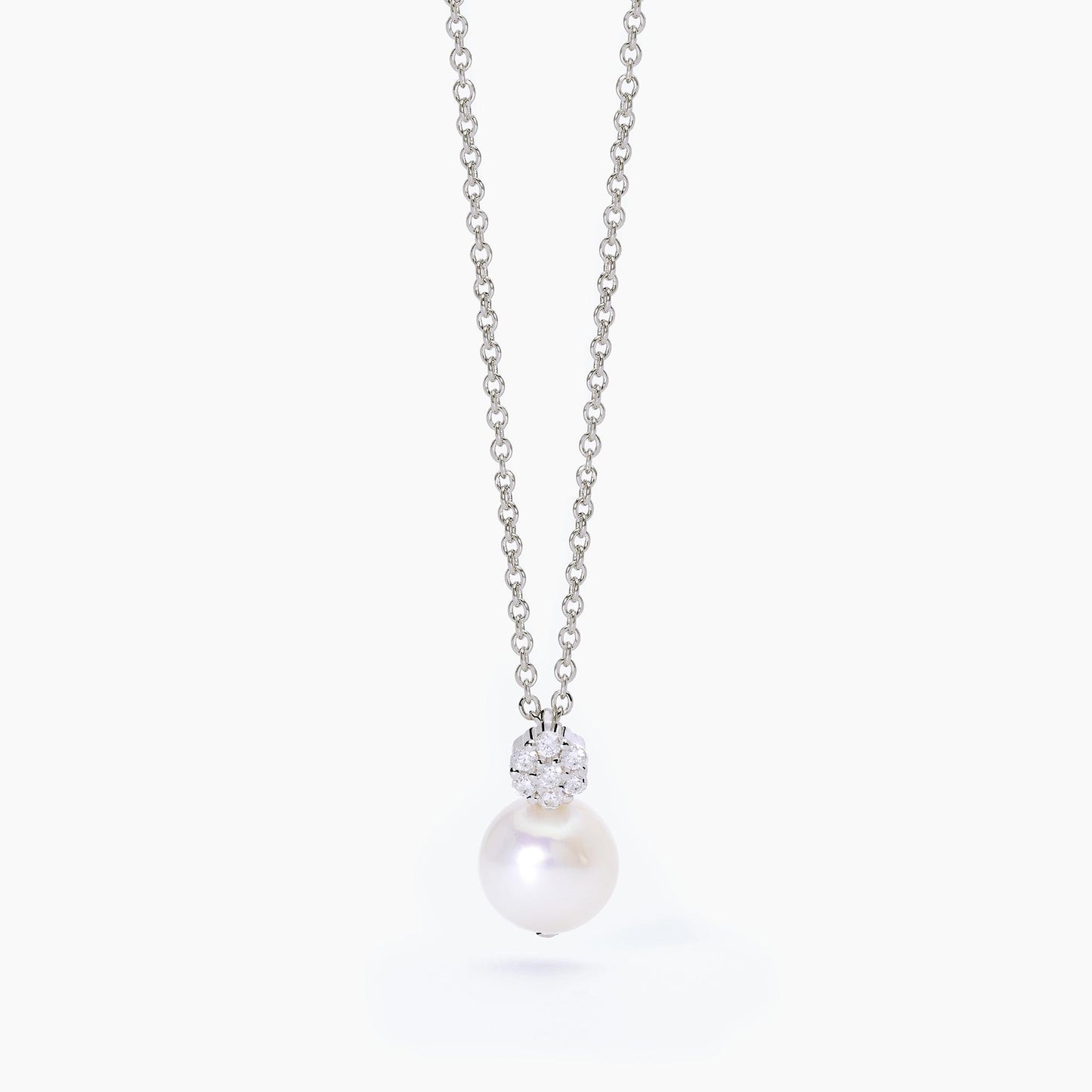 Women's choker in rhodium-plated silver with pendant forzatina chain with cultured pearl and white zircons.