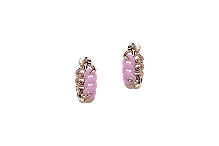 Graziosa coppia di orecchini a groumette dorati in argento 925, impreziositi da un dettaglio laccato con vernice rosa.
