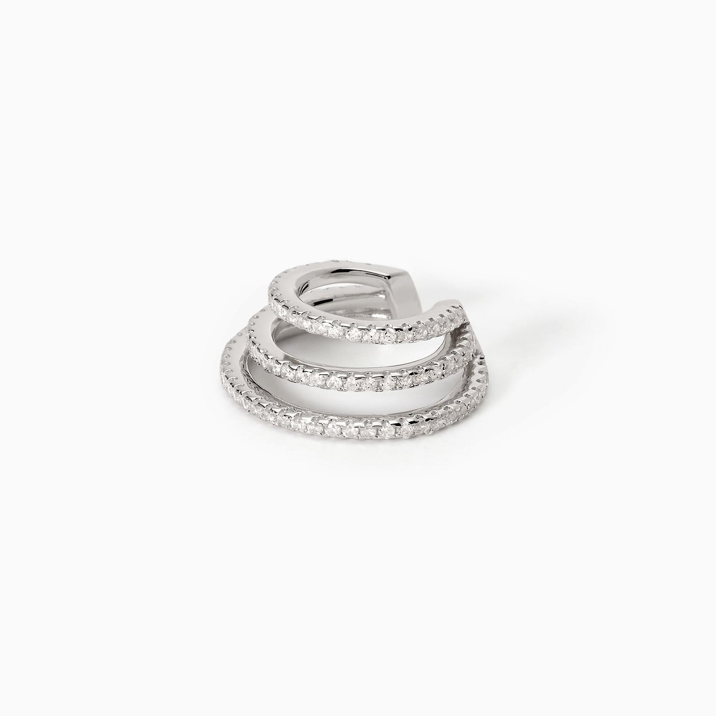 Women's ear cuff earring in rhodium-plated silver with triple circle white zircons.