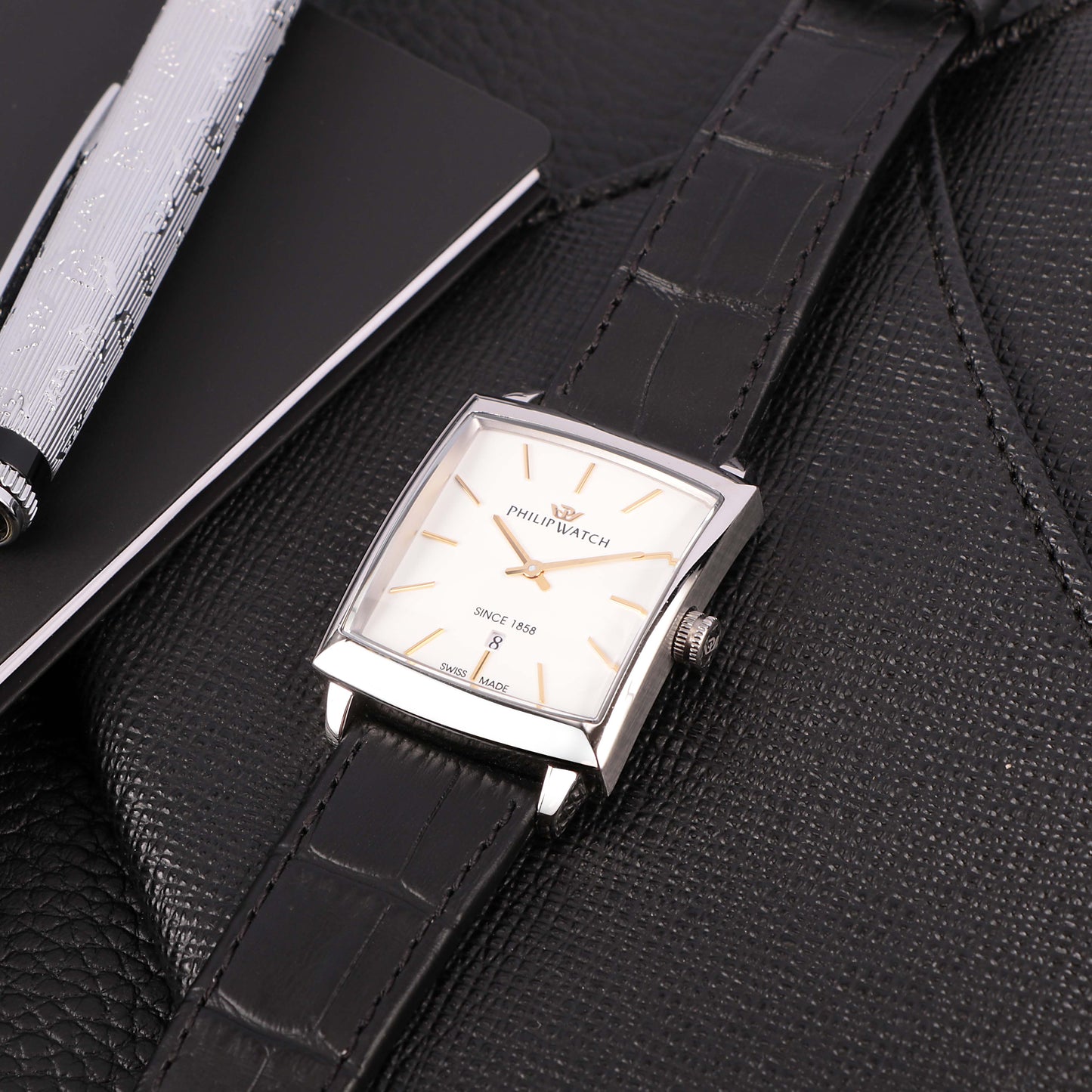 Newport - R8251213003 - Dimensione cassa: 35x30, Materiale cinturino: Bracciale in pelle, Colore cinturino: Nero, Colore quadrante: Argento bianco brillante, Materiale: Cuoio, Acciaio Inox, Spessore cassa: 8.50, Genere : Uomo, Fibbia: Fibbia ardiglione, Garanzia: Ufficiale 2 anni Philip Watch, Confezione: Originale Philip Watch.