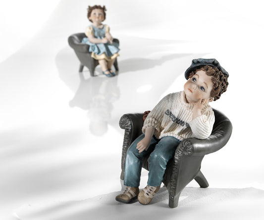 Ogni oggetto prodotto da Sibania è assolutamente unico sia nella realizzazione di ogni singolo pezzo sia nella tecnica di produzione che non ha eguali e che lo rende difficilmente imitabile. Questi articoli sono interamente modellati e dipinti a mano nel nostro laboratorio in provincia di Vicenza (Italia). Gli abiti sono sottili sfoglie di porcellana, su cui vengono impresse delle textures. Queste sfoglie vengono tagliate secondo il modello di abito e poi applicate con pazienza sul corpo della statua. Anche le acconciature dei capelli sono realizzate a mano di volta in volta. Sul cotto a “bisquit” i visi, gli abiti e gli accessori vengono dipinti con colori atossici; il pezzo subisce infine un’ulteriore cottura detta “terzo fuoco”. Ulteriori eventuali dettagli come le corde dei violini o i cavalletti delle vespe sono applicati a questo punto sul pezzo finito.