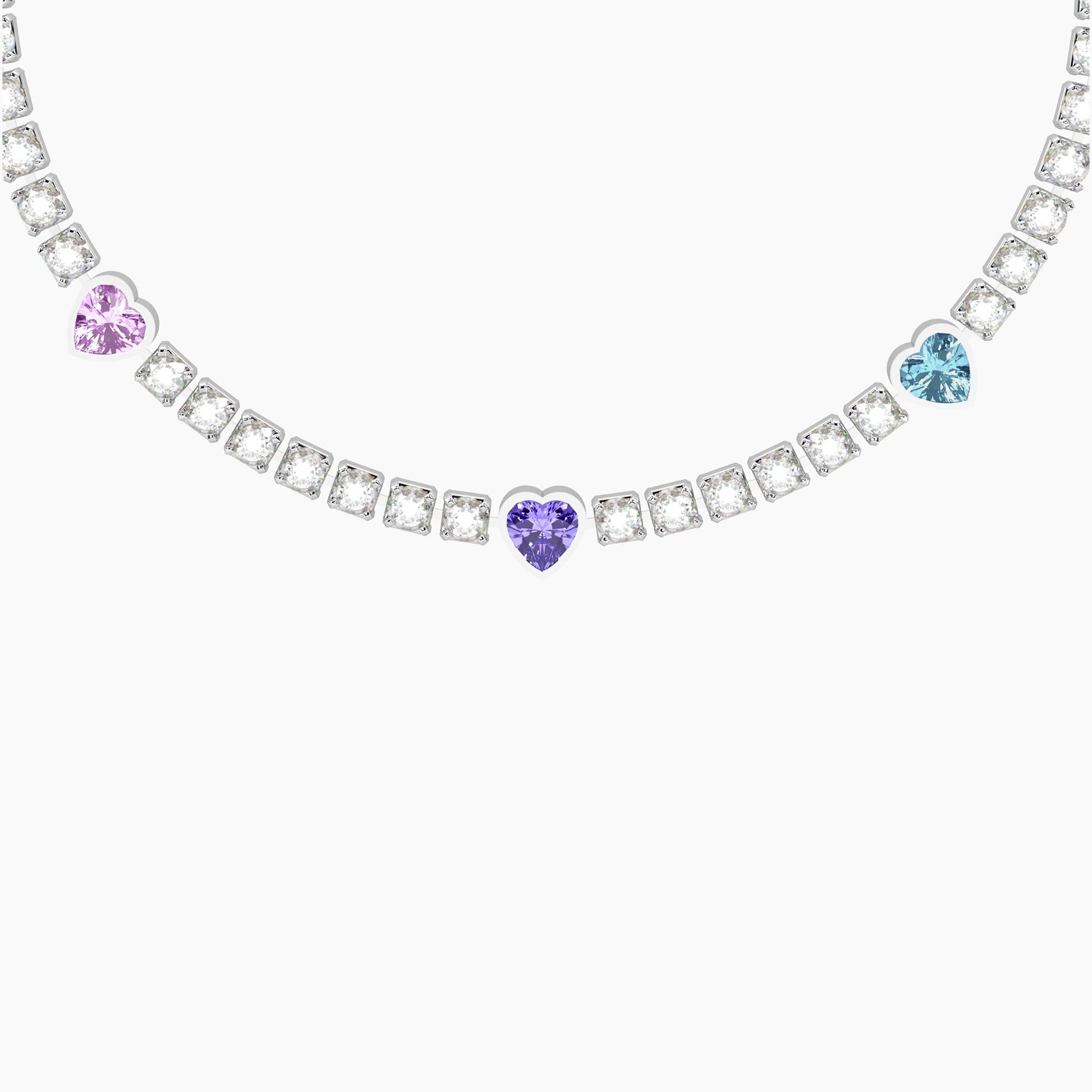 Bracciale regolabile in acciaio con tennis di cristalli e inserti cuore multicolor in zirconi.