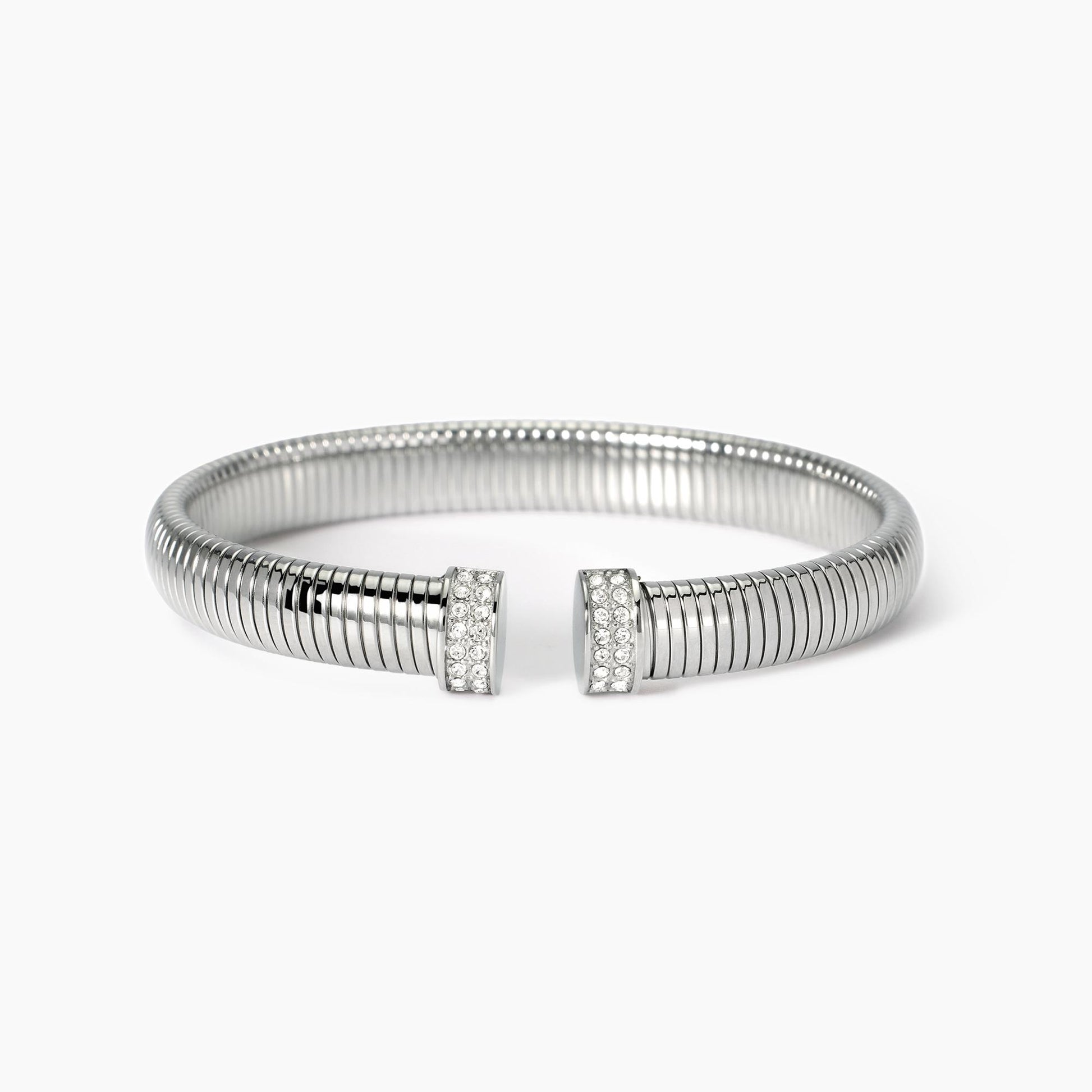 Bracciale in acciaio 316L con maglia tubogas in acciao 304 e cristalli bianchi.