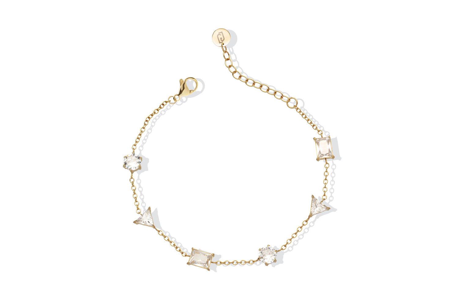 Bracciale Da Donna in Acciaio di colore oro con zirconi di forma alternati. Lunghezza Di 17+3 cm