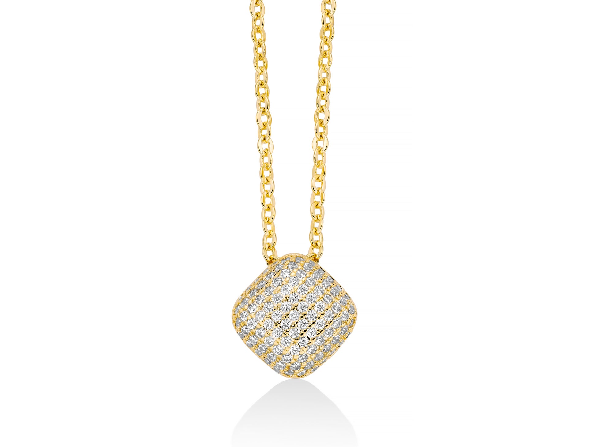 Collana in ottone/acciaio dorato con ciondolo a rombo zirconato
