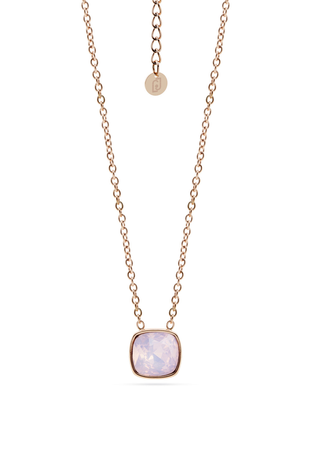 Collana Realizzata In Acciaio di colore oro rosa con pietra rosa. Lunghezza Di 45+5 cm