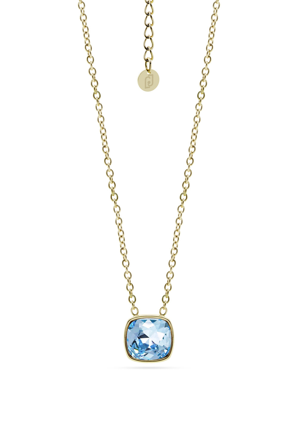 Collana Realizzata In Acciaio di colore oro con pietra azzurra. Lunghezza Di 45+5 cm