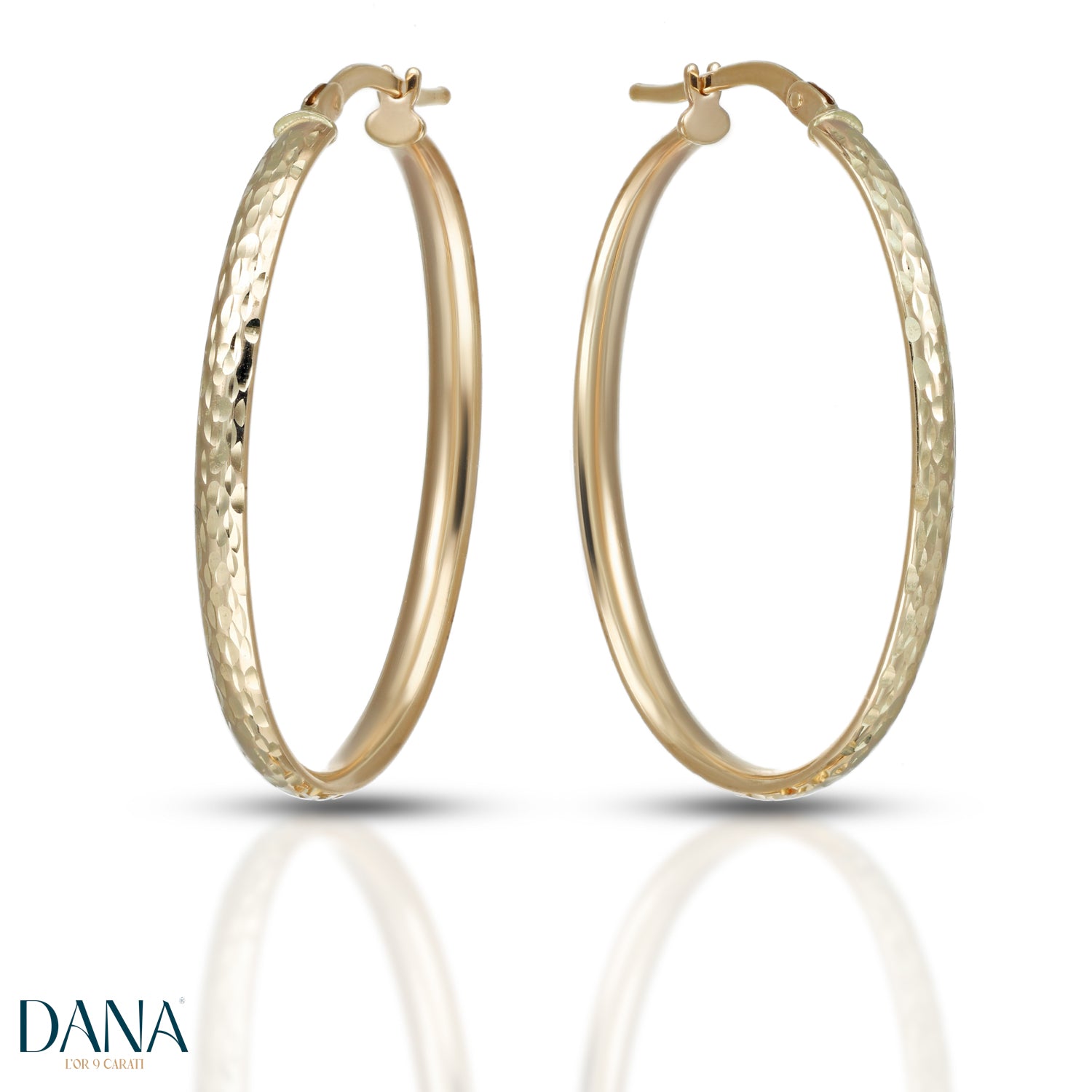 Orecchini ovali in oro giallo 9kt con lavorazione diamantata.