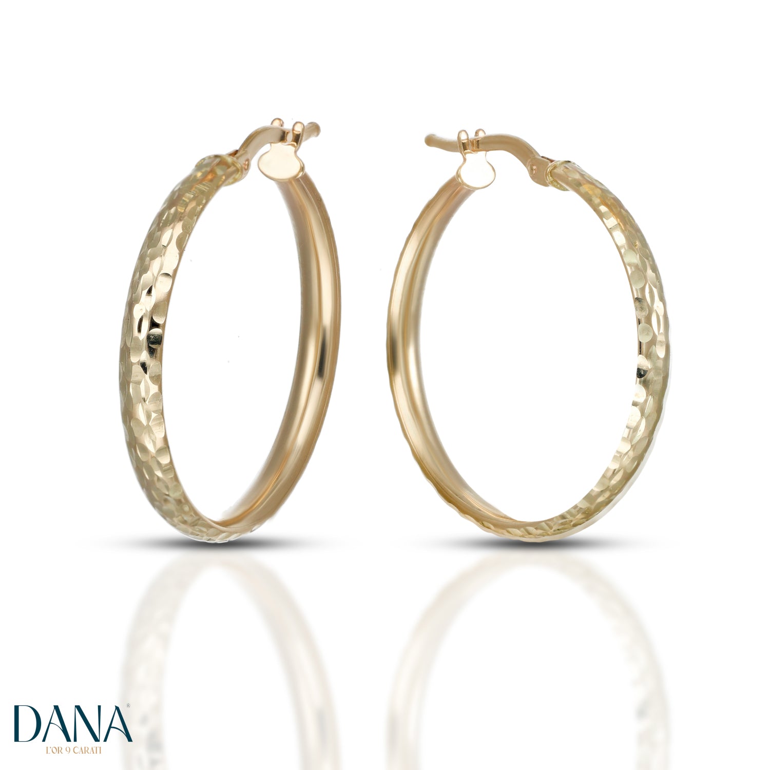 Orecchini a cerchio in oro giallo 9kt, con lavorazione diamantata.