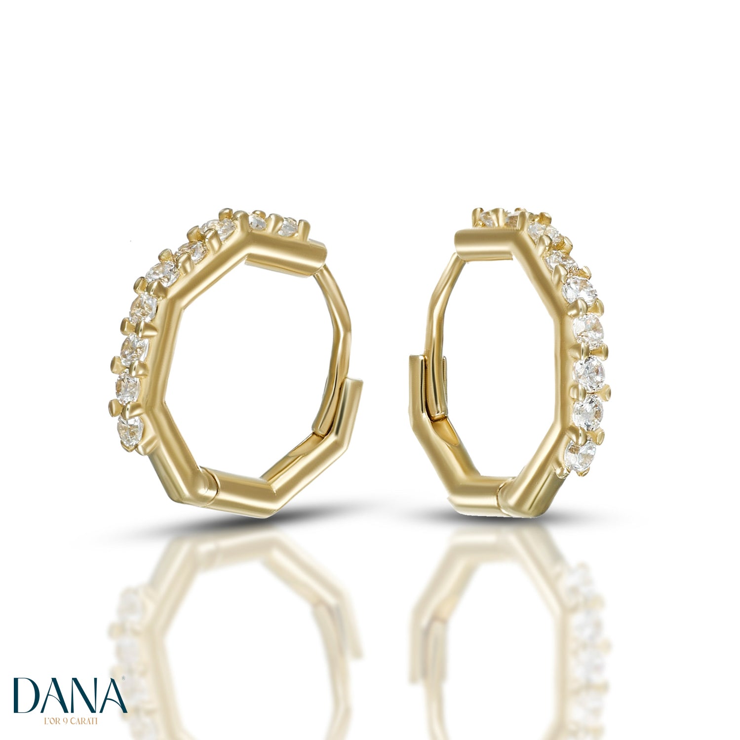 Orecchini in oro giallo 9kt di forma ottagonale con zirconi