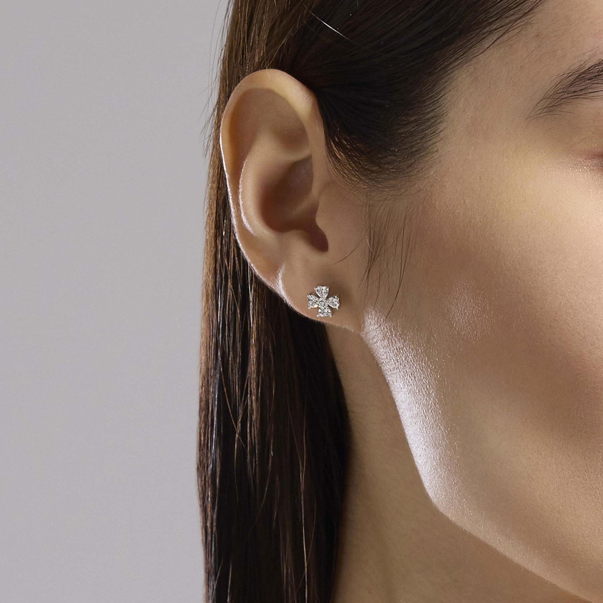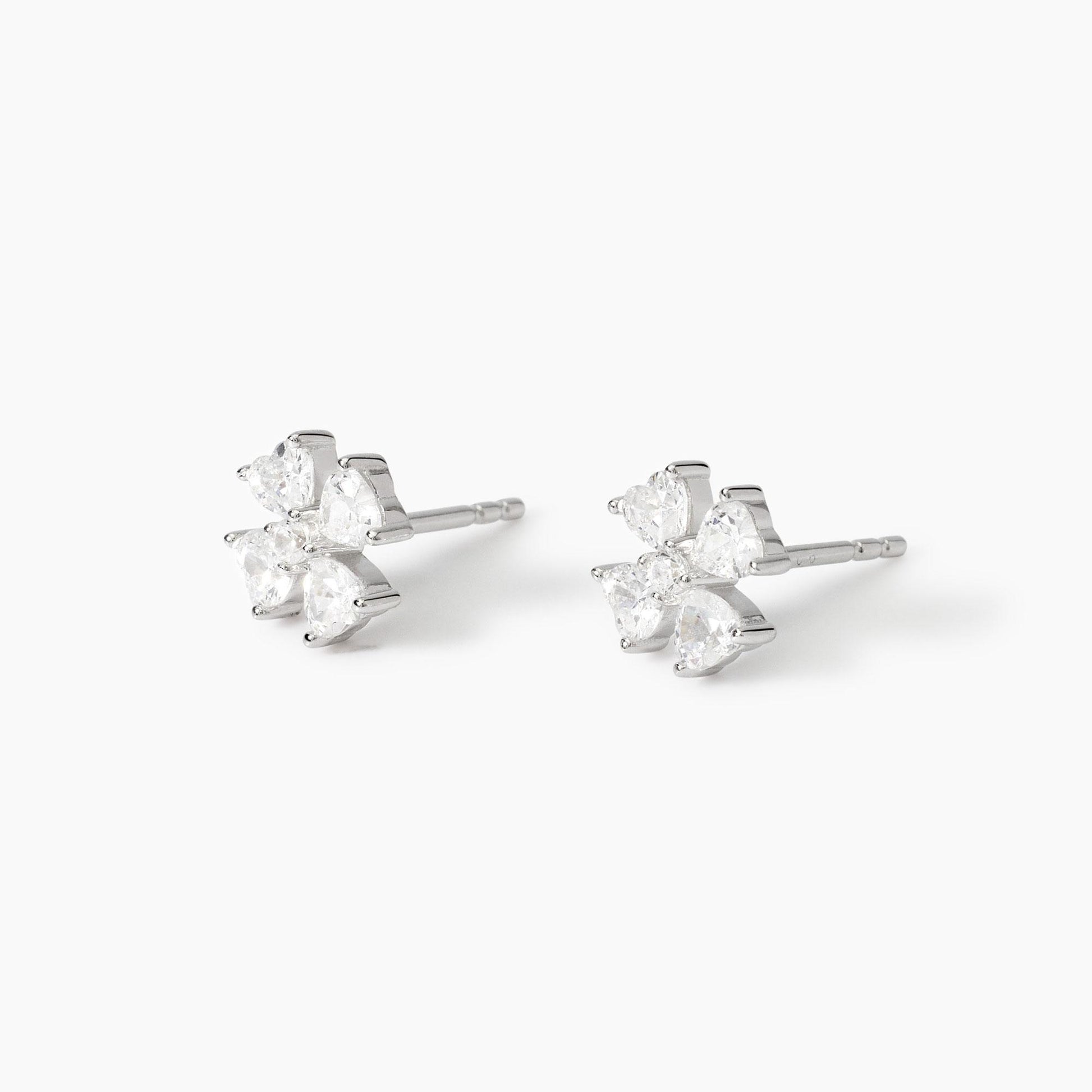 Orecchini a lobo in argento con forma quadrifoglio in zirconi bianchi taglio cuore.