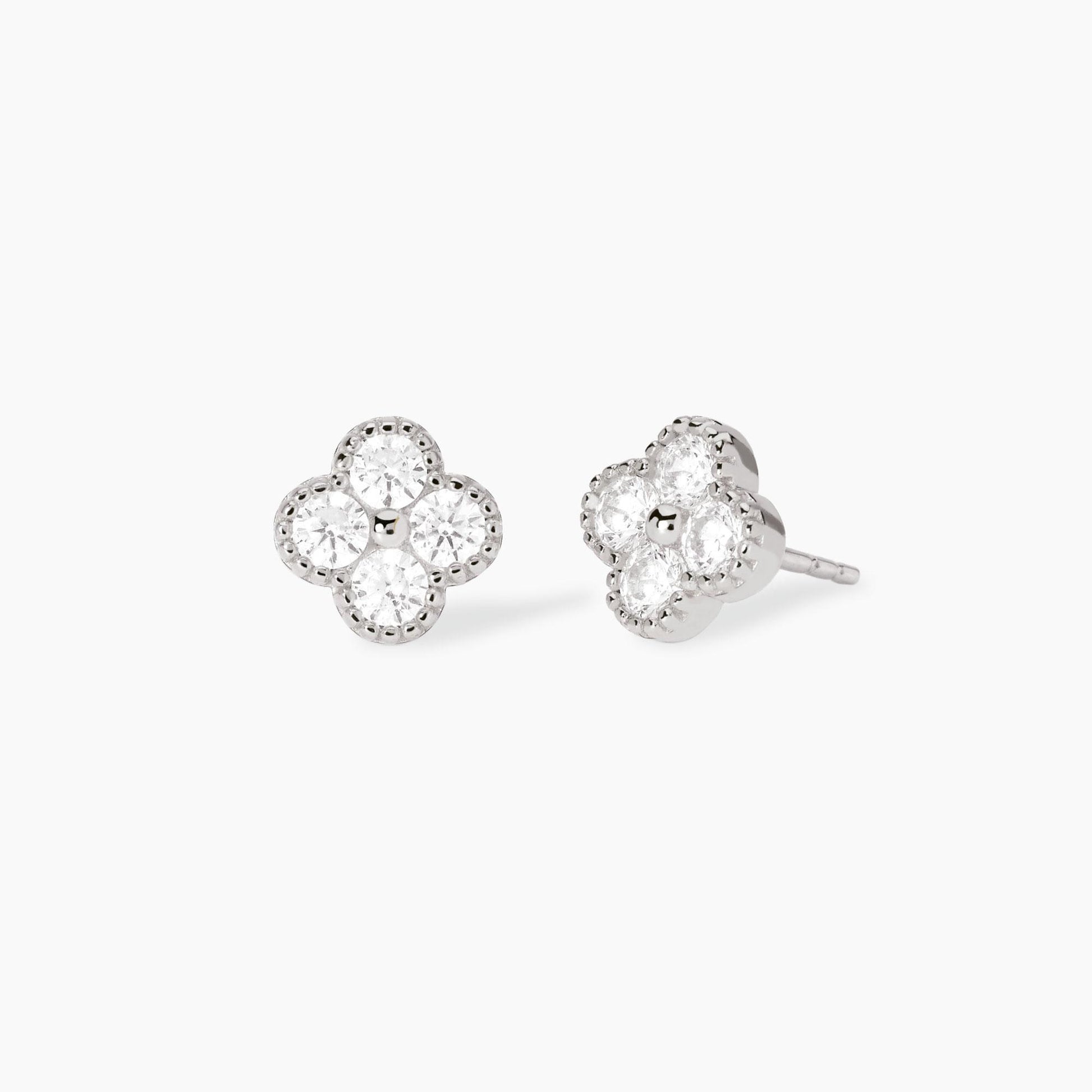 Orecchini a lobo in argento placcato oro 18K con forma fiore in zirconi bianchi.