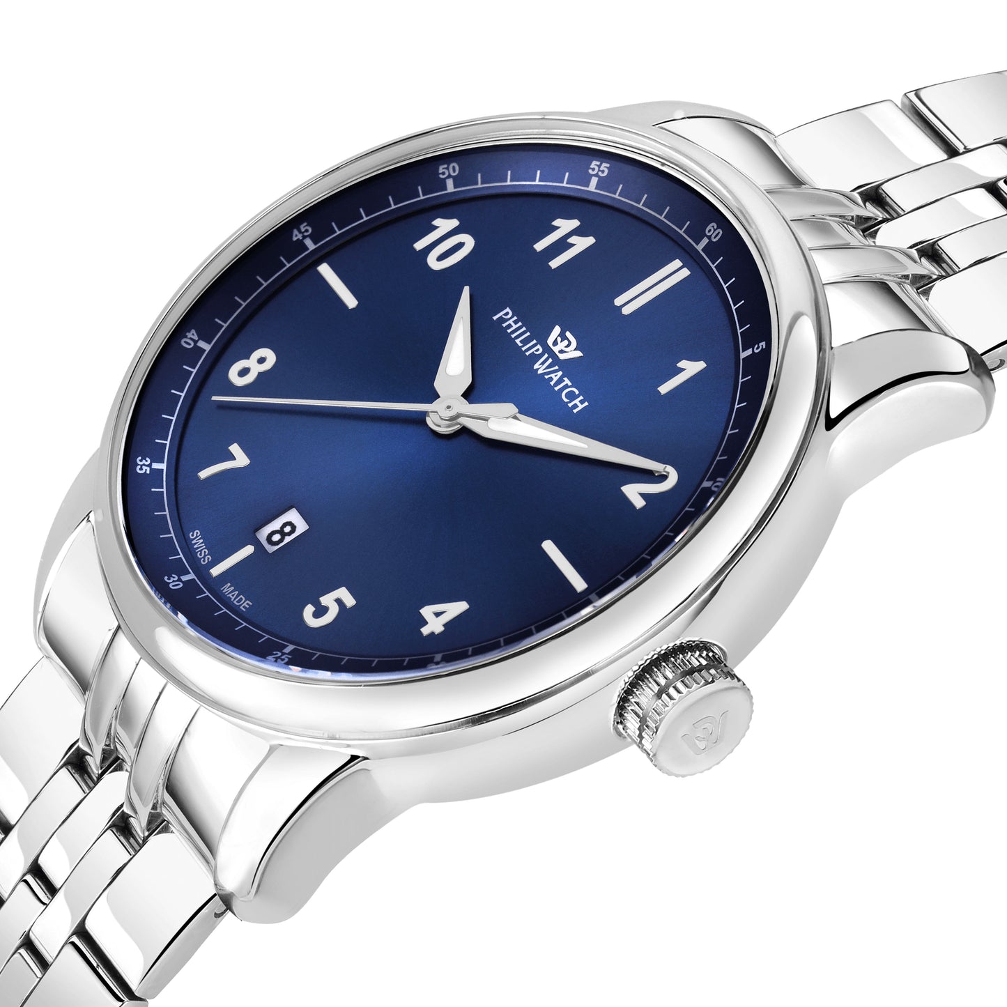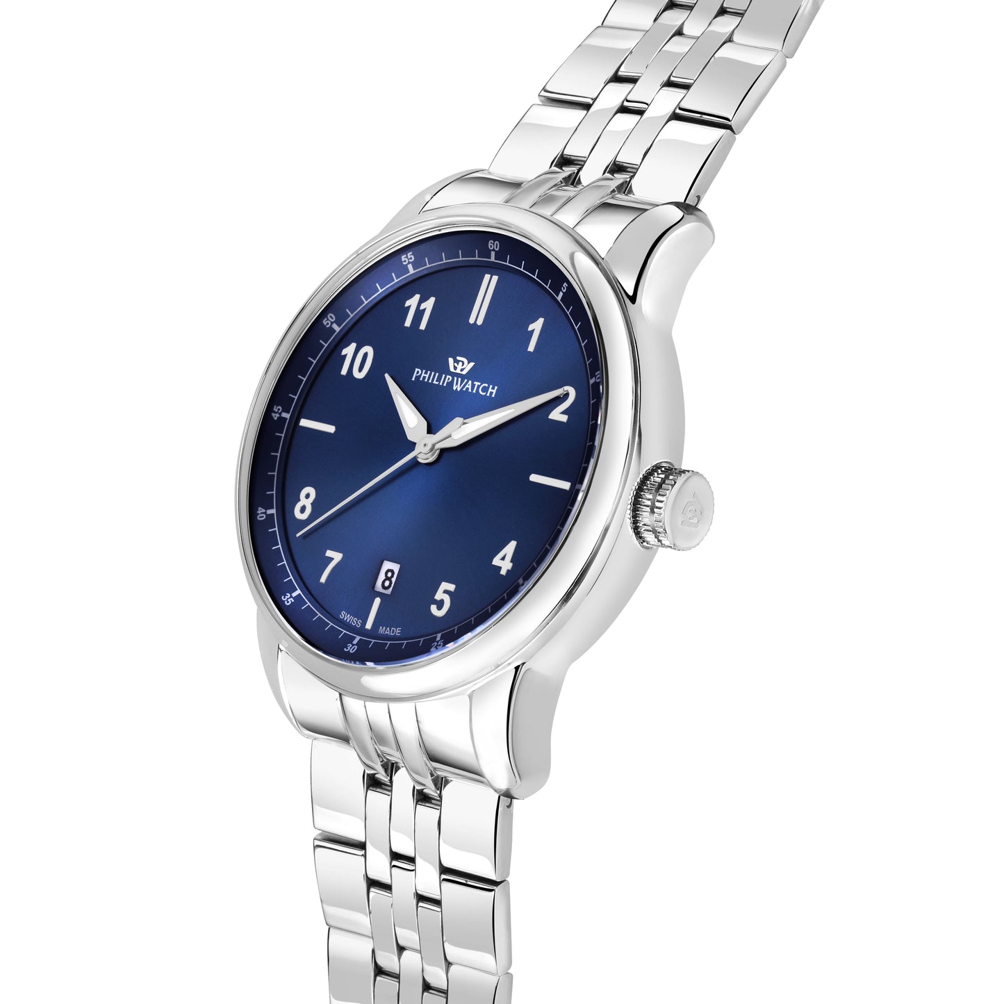 ANNIVERSARY - R8253150011, Genere : Uomo, Materiale e finitura cassa: Acciaio, Misura cassa: 40mm, Finitura cassa: Lucido, Colore cassa: Silver, Blu, Vetro: Vetro minerale, Materiale cinturino: Bracciale in metallo, Colore cinturino: Silver, Chiusura: Fibbia a farfalla, Swiss made: Sì, Water resistant: 10 atm, Garanzia: Ufficiale 2 anni Philip Watch, Confezione: Originale Philip Watch