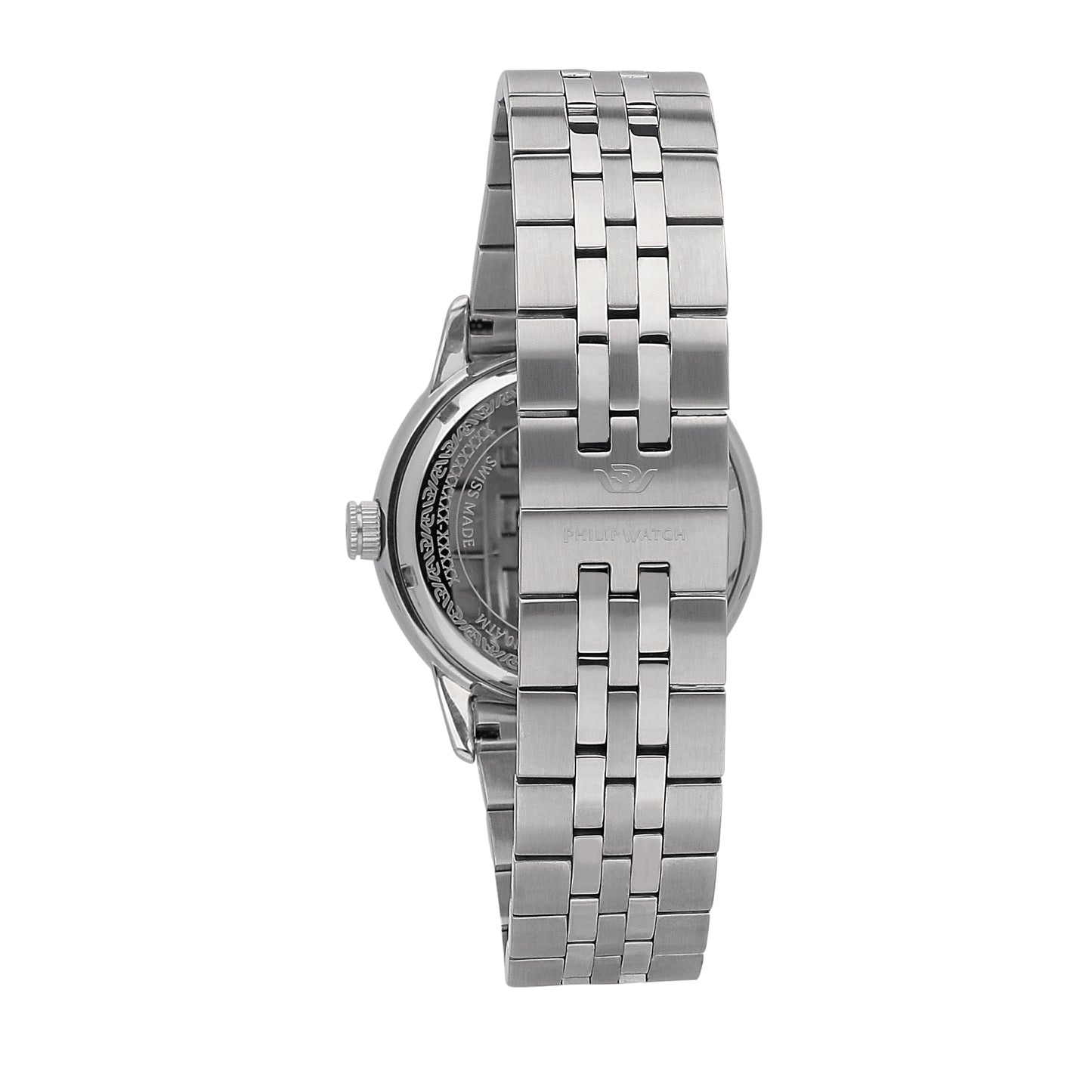 Anniversary - R8253150012, Genere : Uomo, Materiale e finitura cassa: Acciaio, Misura cassa: 47x40mm, Spessore cassa: 9.65, Colore cassa: Nero, Vetro: Vetro minerale, Materiale cinturino: Bracciale in metallo, Colore cinturino: Argento, Chiusura: Fibbia a farfalla, Movimento: Quarzo, Garanzia: Ufficiale 2 anni Philip Watch, Confezione: Originale Philip Watch