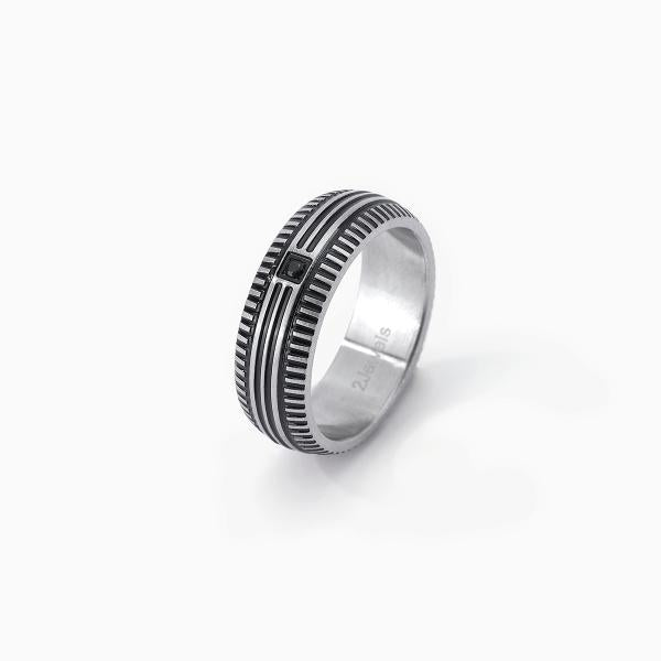 Anello in acciaio 316L con zirconi neri Ø 2 mm.