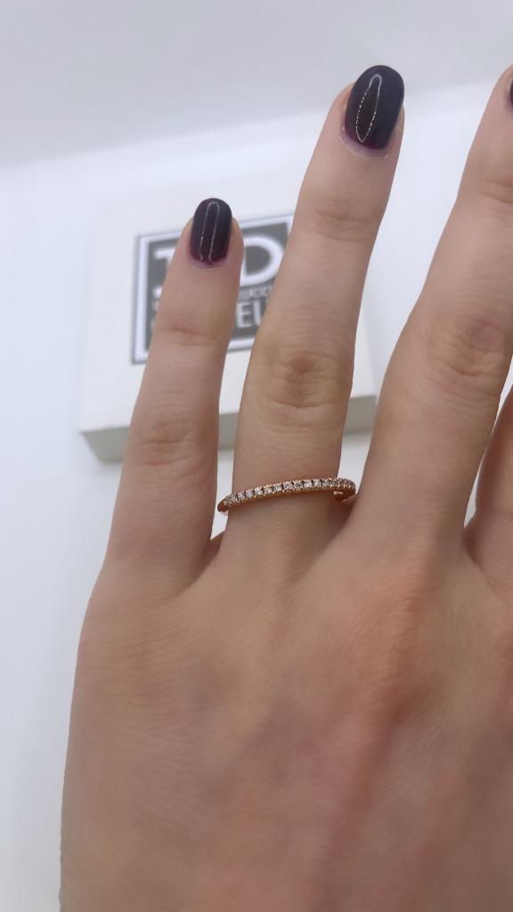 Anello mezza veretta in oro rosa 18 kt e diamanti.