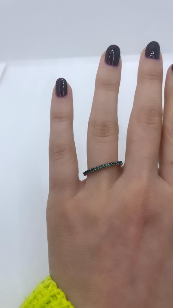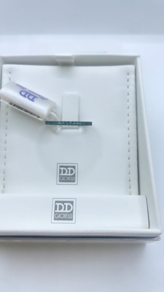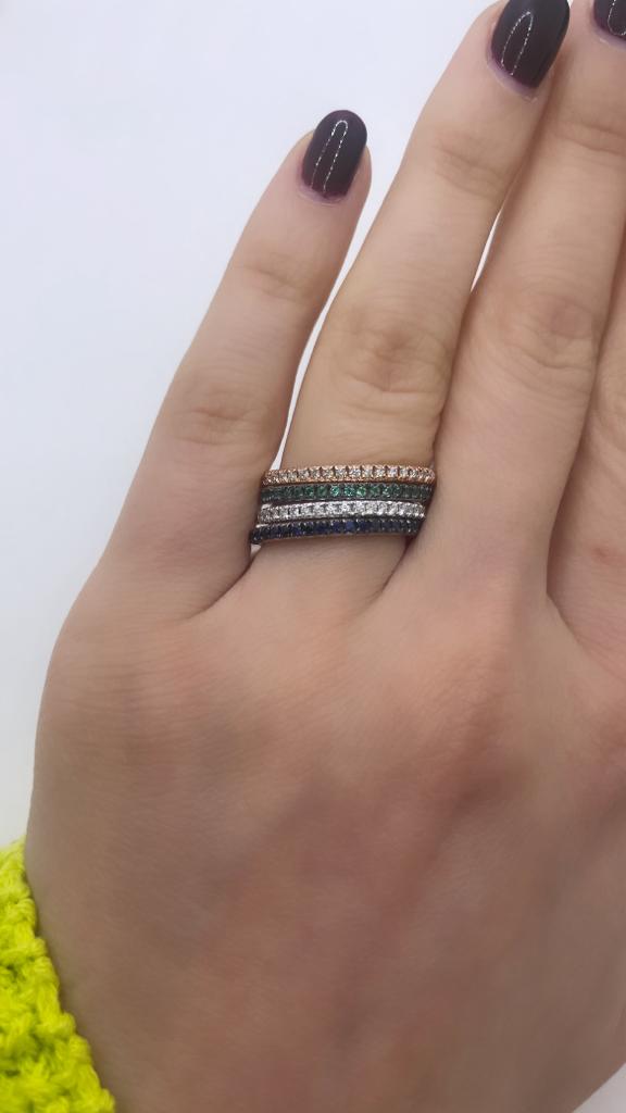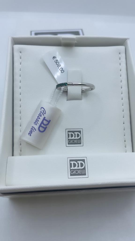 Anello mezza veretta in oro bianco18 kt e smeraldi con griffe imbrunite.