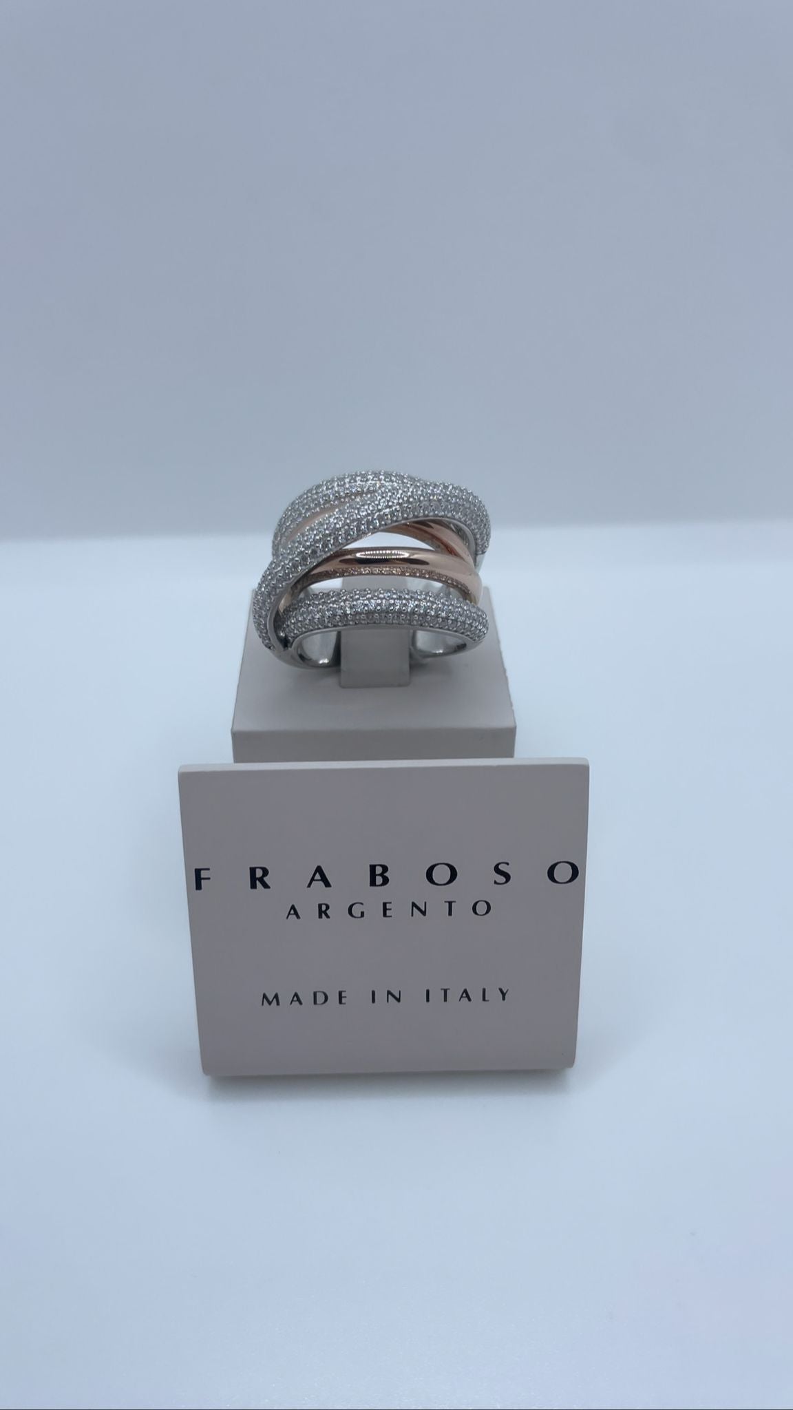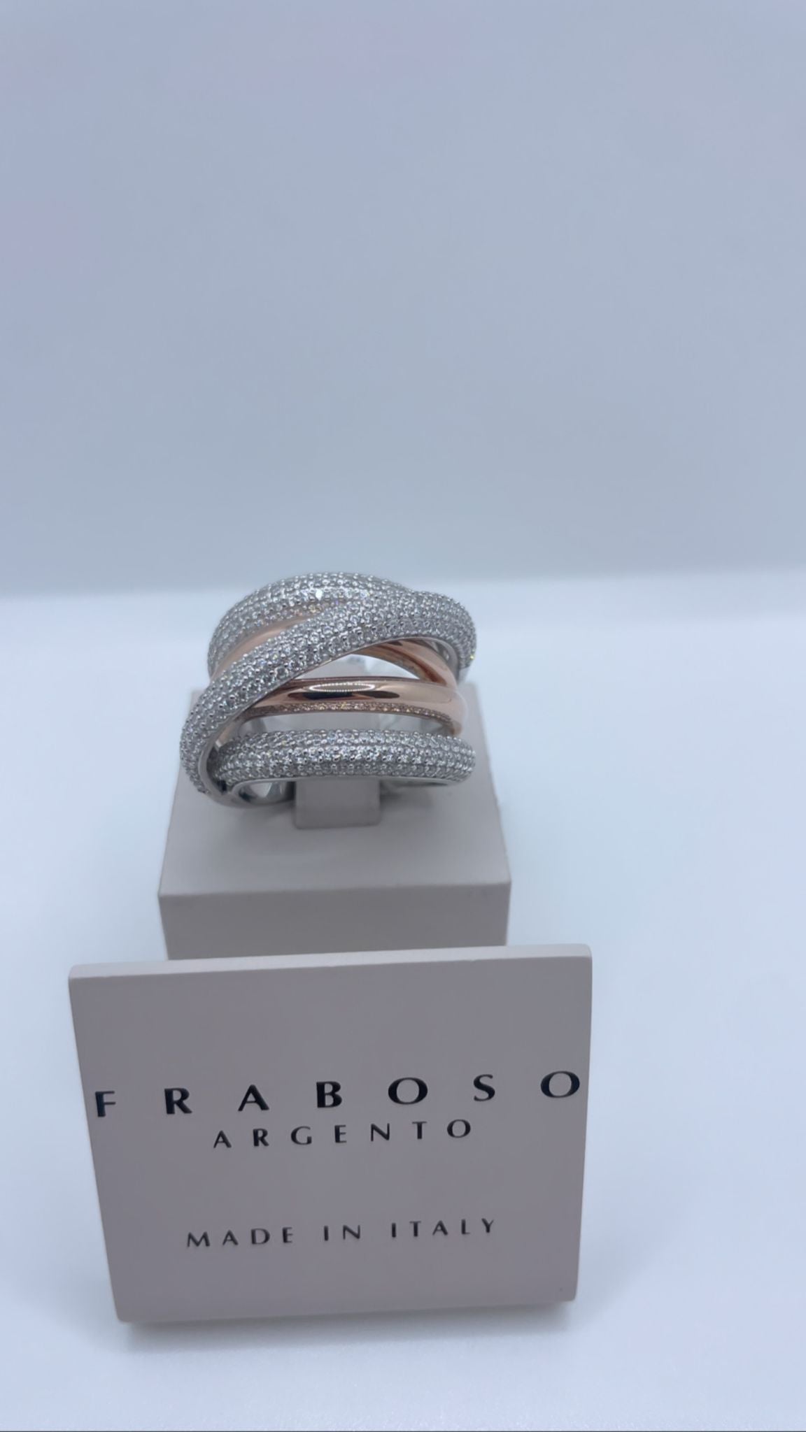 Anello in argento 925 e color oro rosa con zirconi.
