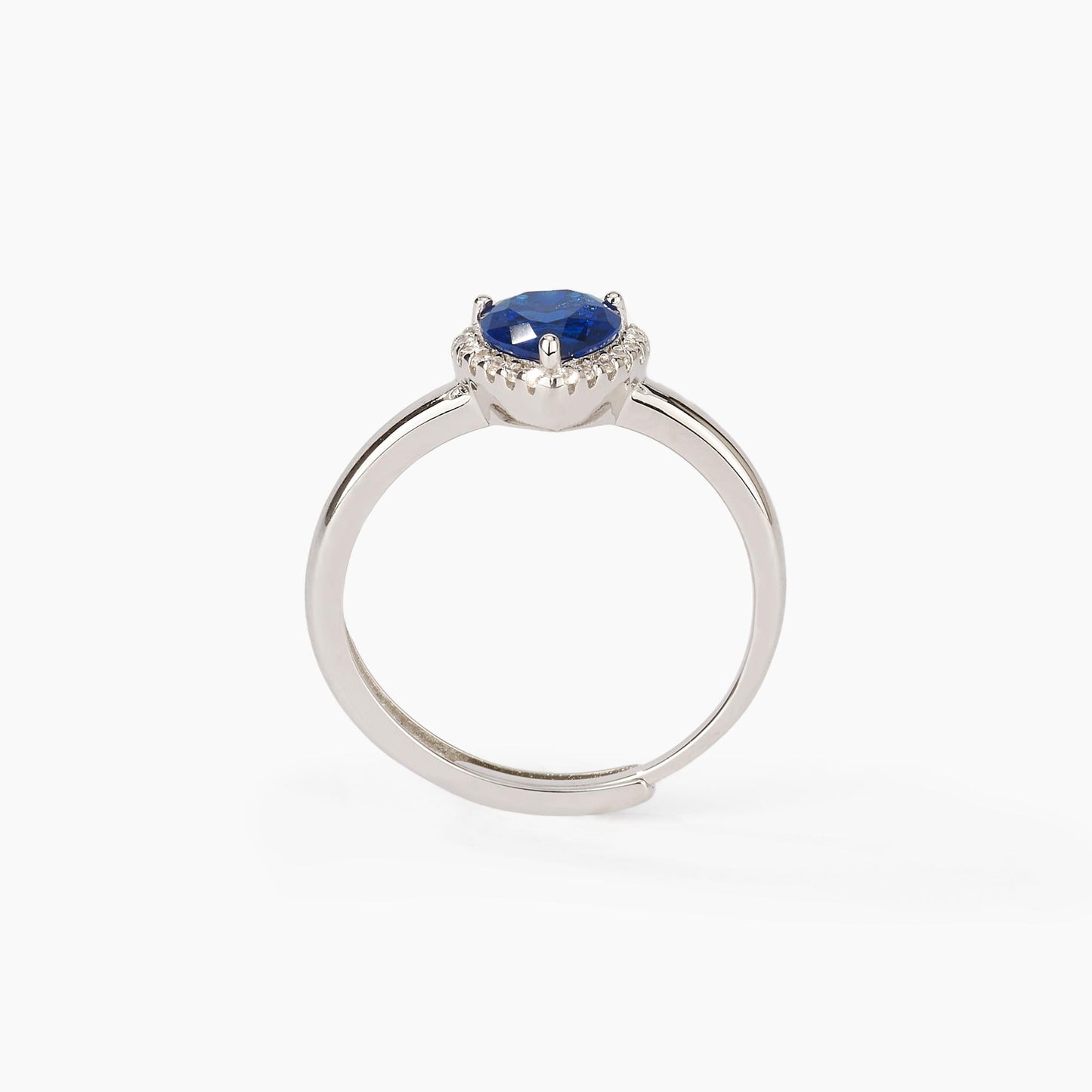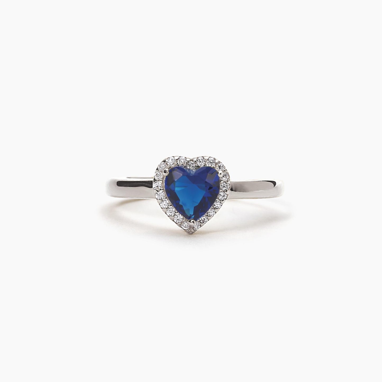 Anello in argento con cuore in vetro color zaffiro e zirconi.
