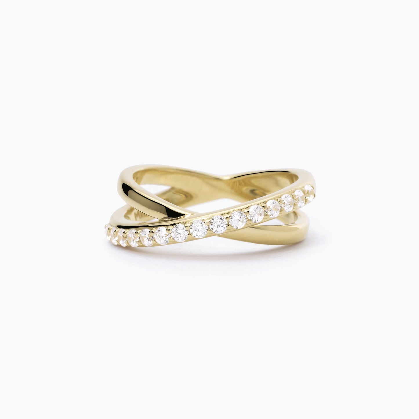 Anello fasce incrociate in argento placcato oro 18k e zirconi.