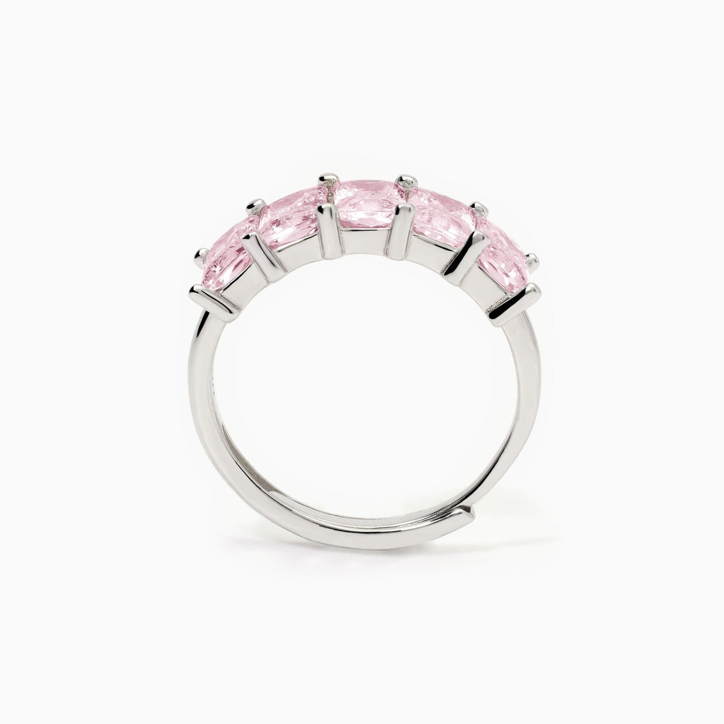 Anello regolabile da donna in argento rodiato con zirconi rosa taglio baguette.