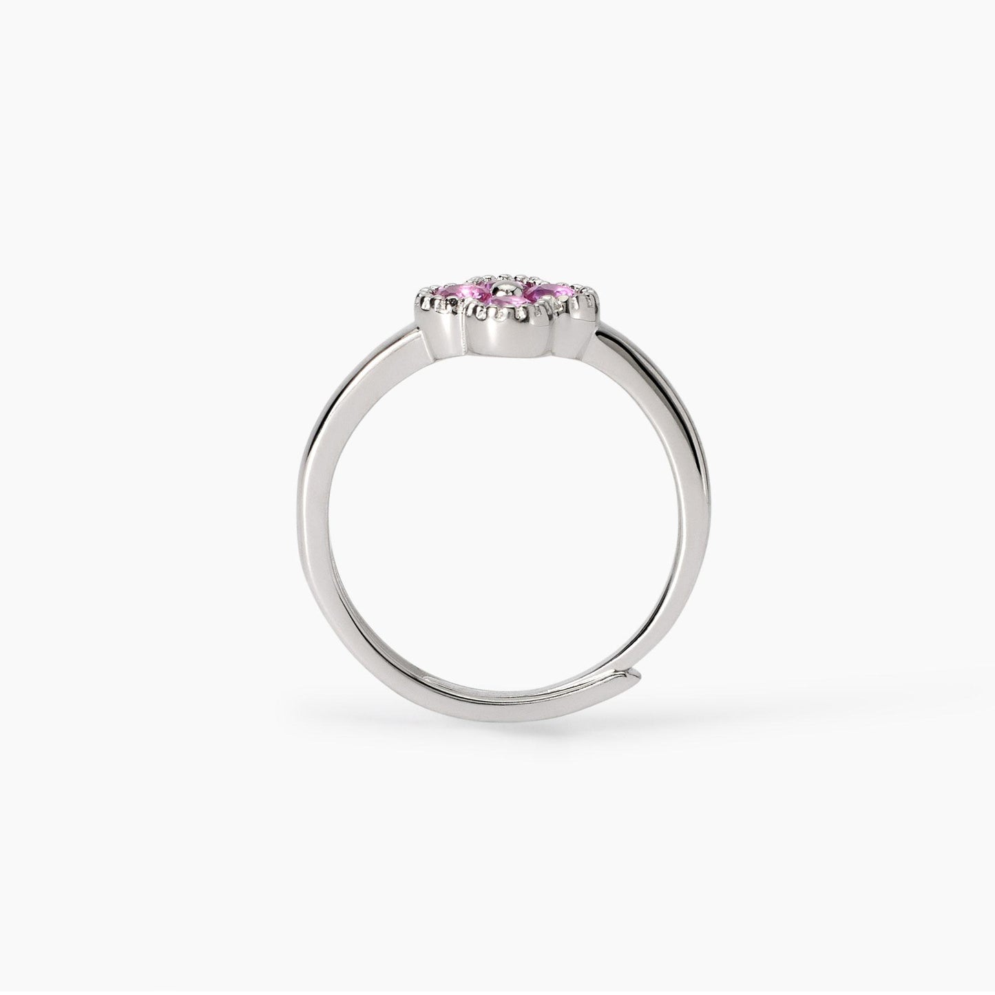 Anello regolabile in argento con fiore in tormaline sintetiche.