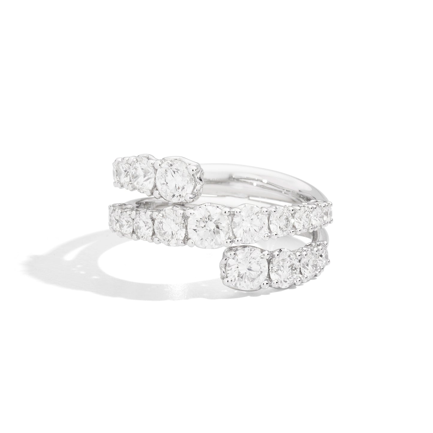 Anello a spirale, oro bianco 18 kt e diamanti taglio brillante.