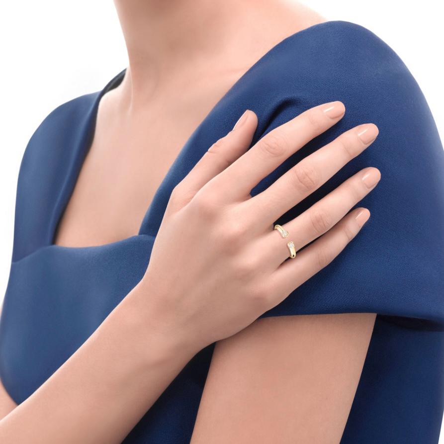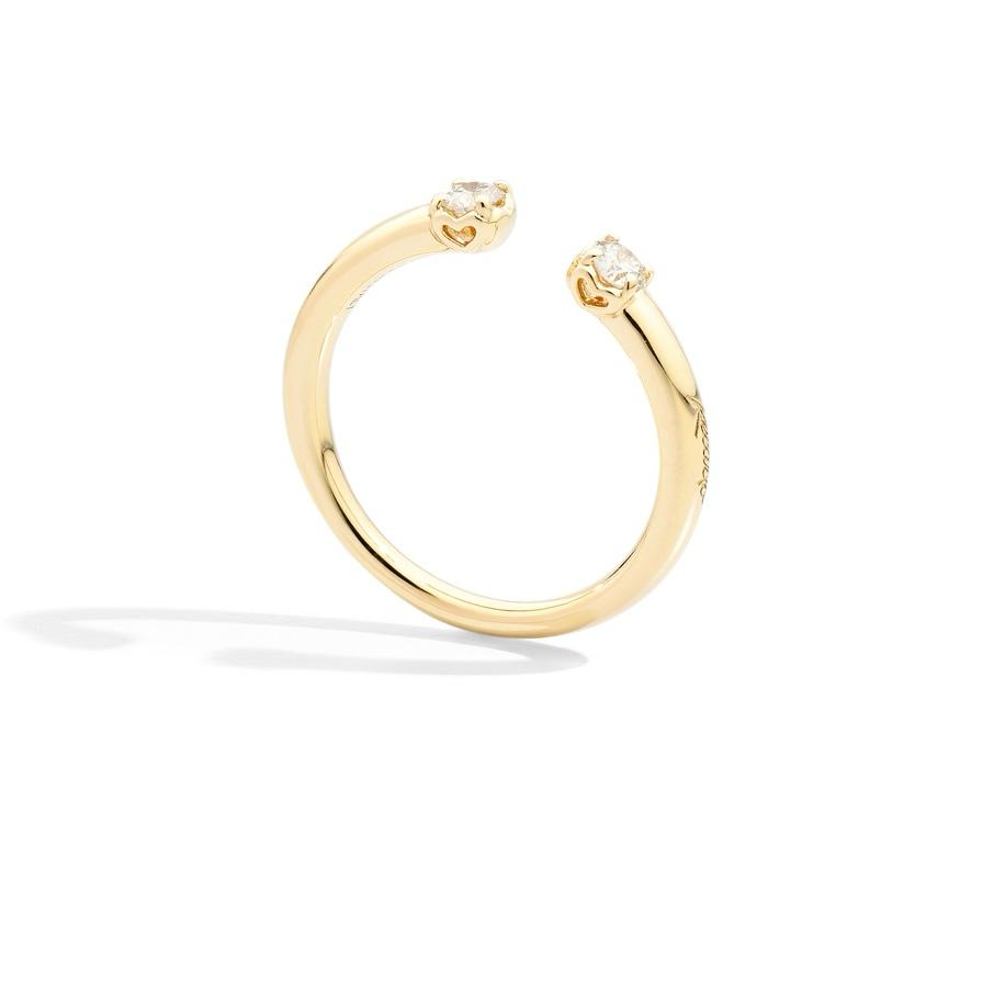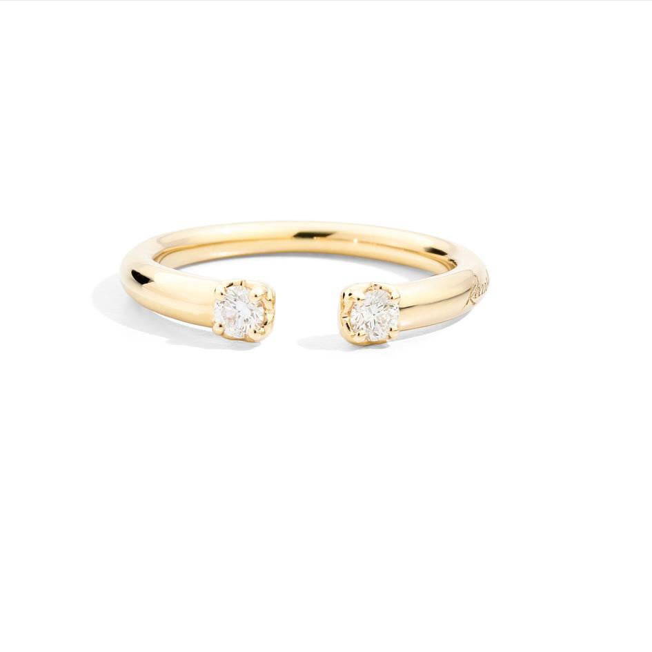 Anello veretta aperta, oro giallo 18 kt e 2 diamanti naturali taglio brillante.