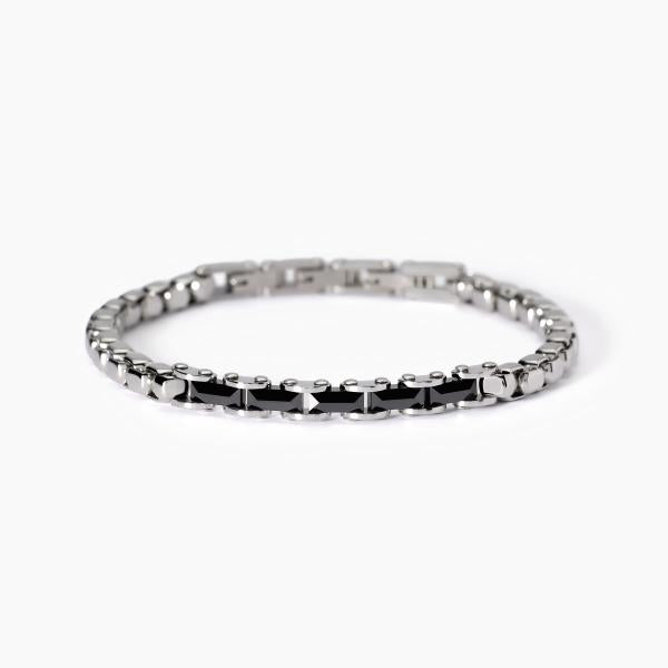 Bracciale in acciaio 316L con catena veneta 5 mm e inserti in ceramica nera 7.5x3 mm, lunghezza regolabile da 19 a 21 cm