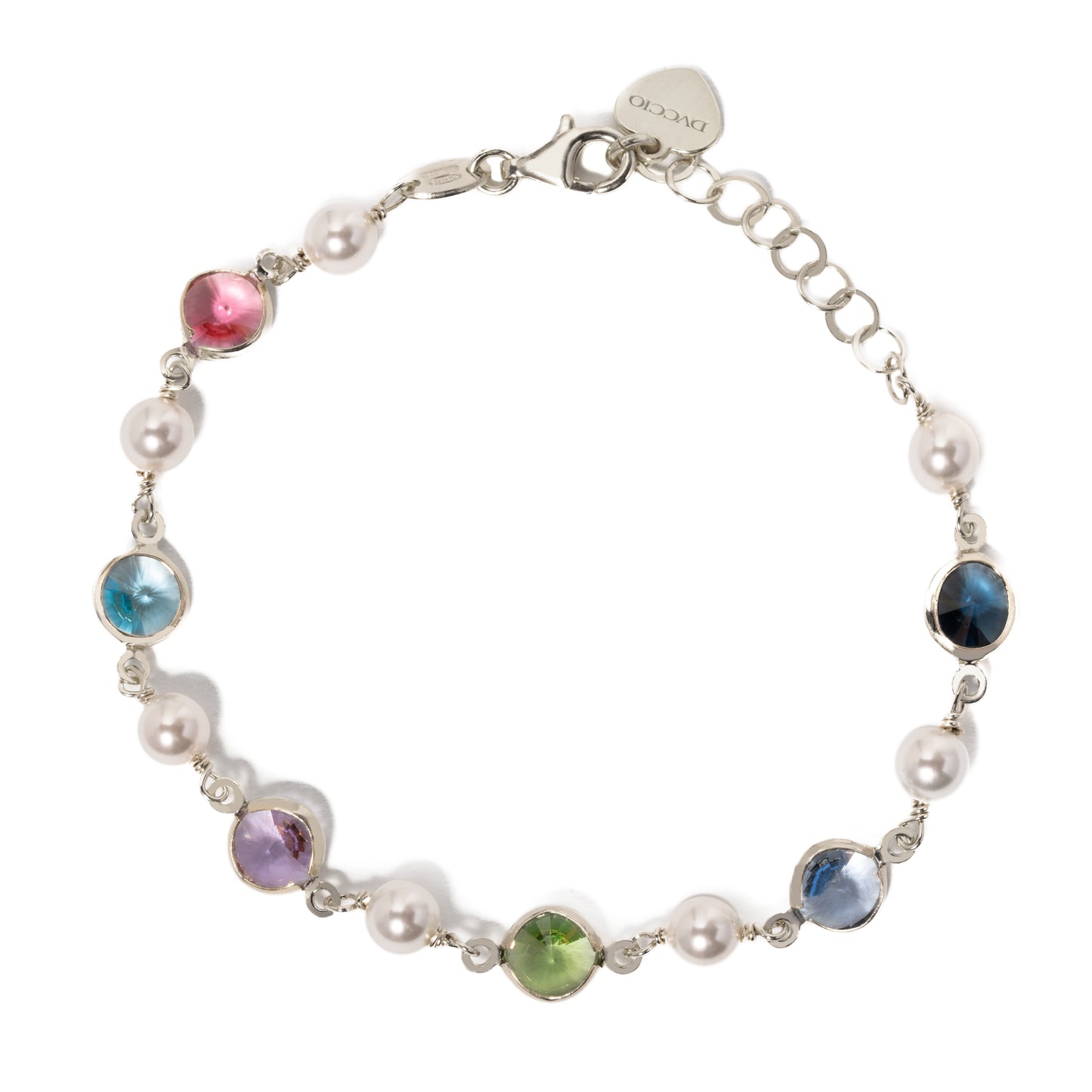 Bracciale jordan forever in argento 925 con placcatura in oro bianco, con cristalli naturali multicolor e a seguire alternati con sette perle.