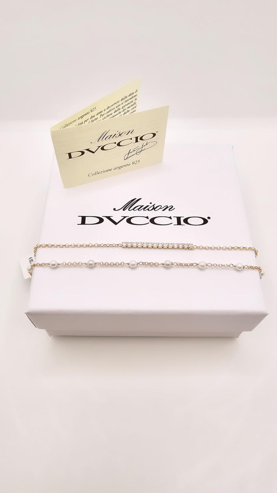 Bracciale in argento 925 placcato in oro rosa con zirconi e perle. Lunghezza bracciale 16 cm + 3 cm di allungo.