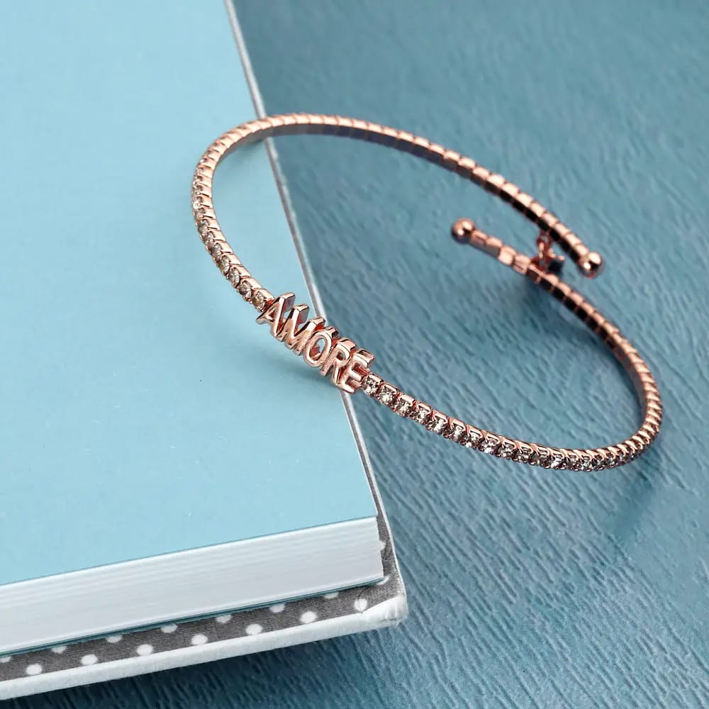 Genere: Donna, Colore: Rose-gold, Materiale: Vetro, Placcatura rodio, Colore pietra: Bianco, Simbolo: Frase, Certificato di autenticità: Sì, Confezione: Originale La Petite Story, Modello: Tennis