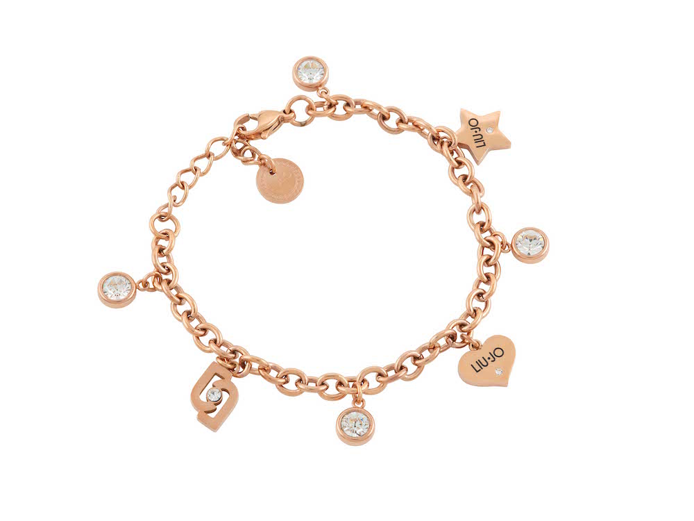 Bracciale da donna realizzato in acciaio di colore gold rose. Lunghezza: 17,5cm + 4cm