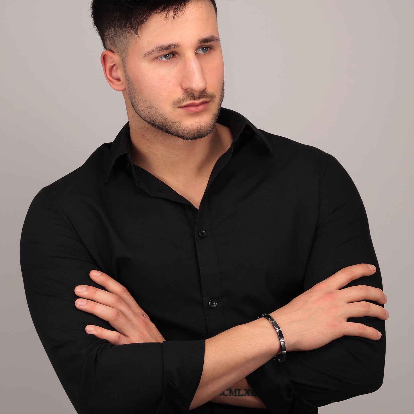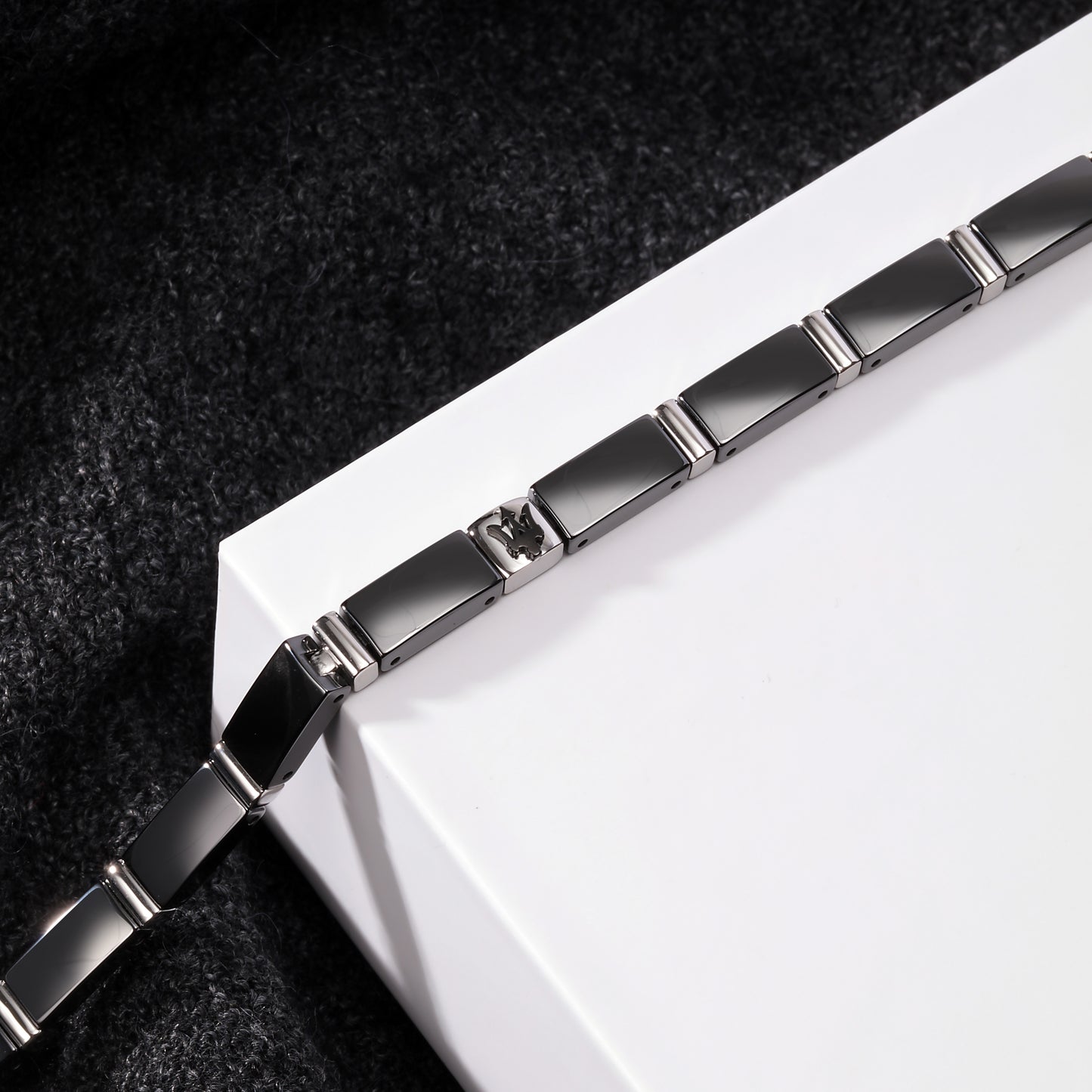 Bracciale in acciaio, ceramica, pvd nero da 22cm