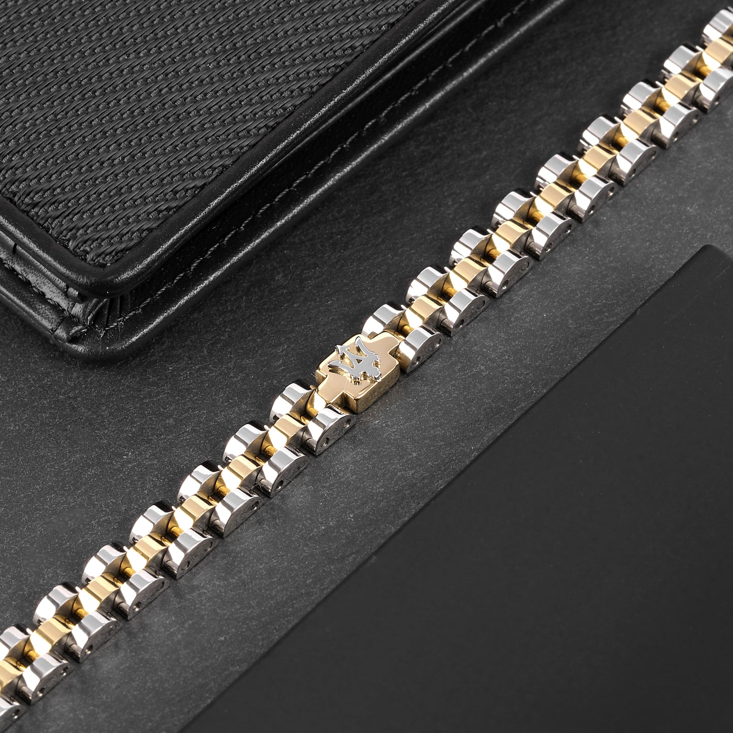 Bracciale realizzato in acciaio della lunghezza di 21 cm.