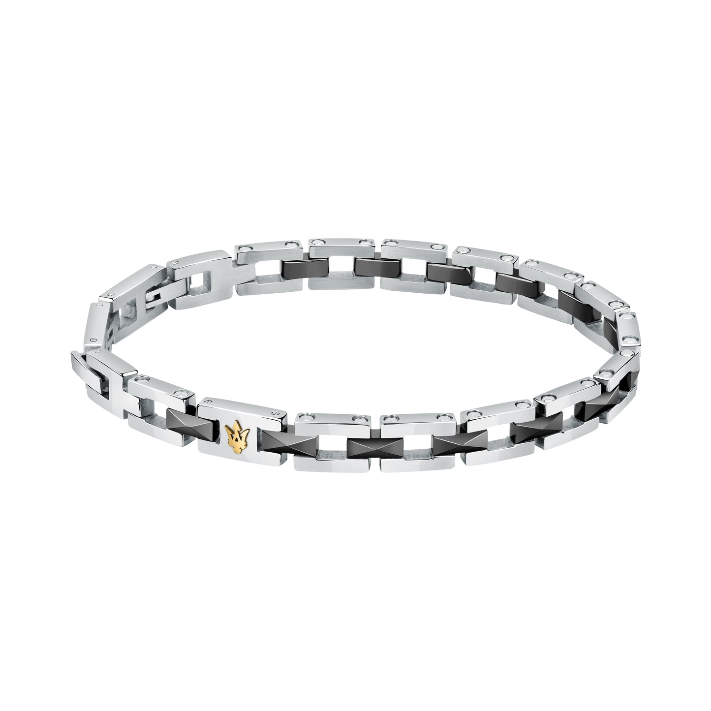 Bracciale realizzato in acciaio e ceramica con finitura color oro giallo. Lunghezza: 22cm