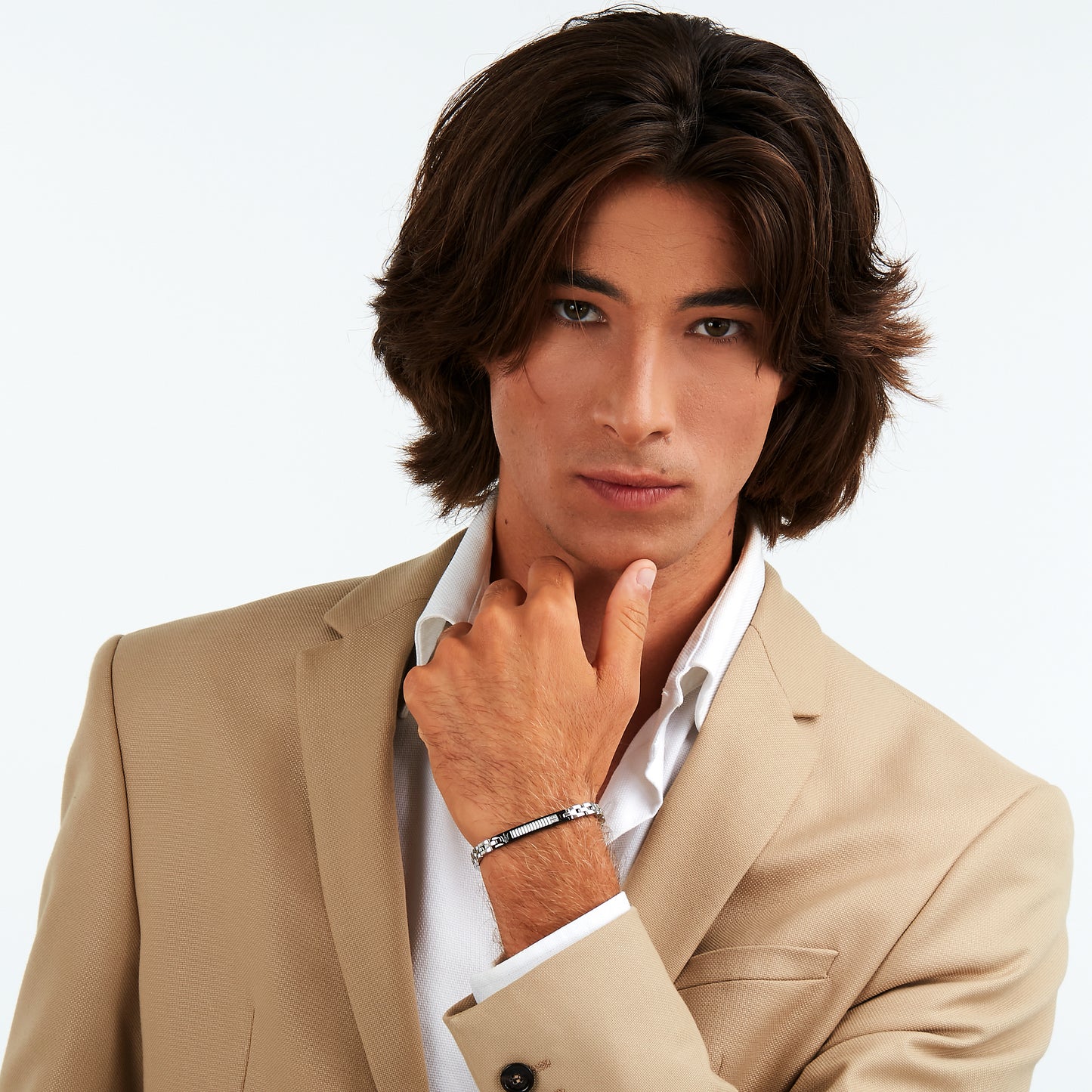 Bracciale realizzato in acciaio con diamante. Misura gioiello: 18+3,5cm.