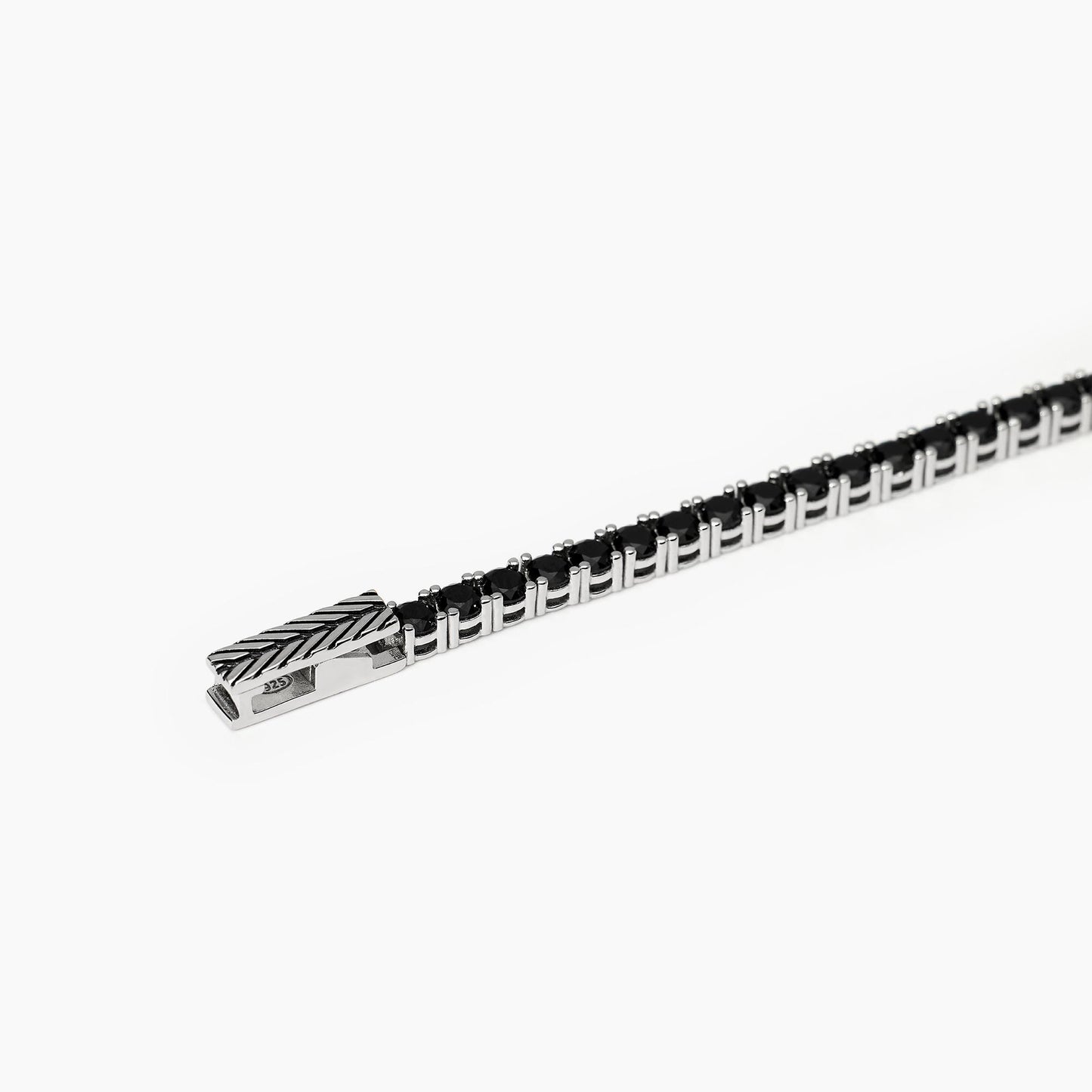 Bracciale tennis da uomo in argento brunito con zirconi neri.