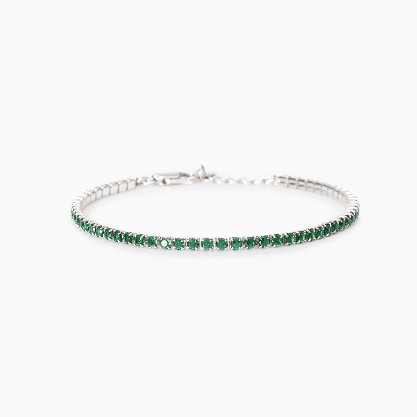 Bracciale tennis regolabile in argento rodiato con smeraldi sintetici.