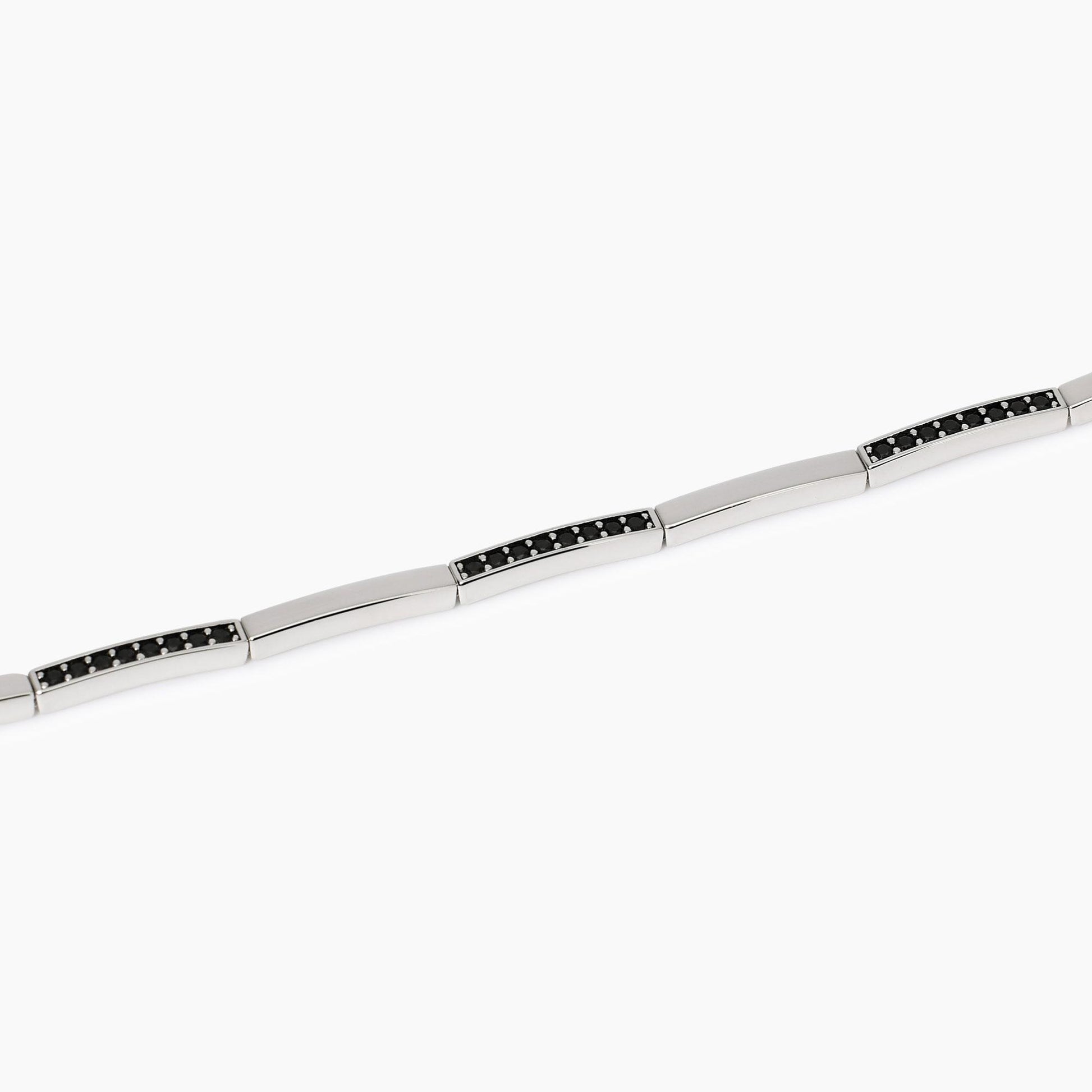 Bracciale regolabile da uomo con con piastre in argento rodiato e zirconi neri.