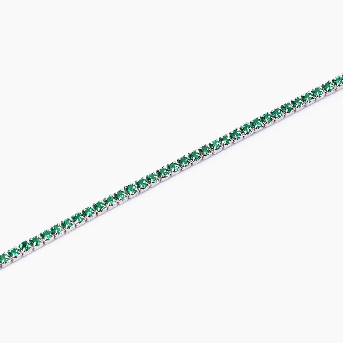 Bracciale regolabile tennis unisex in argento rodiato con smeraldi sintetici.