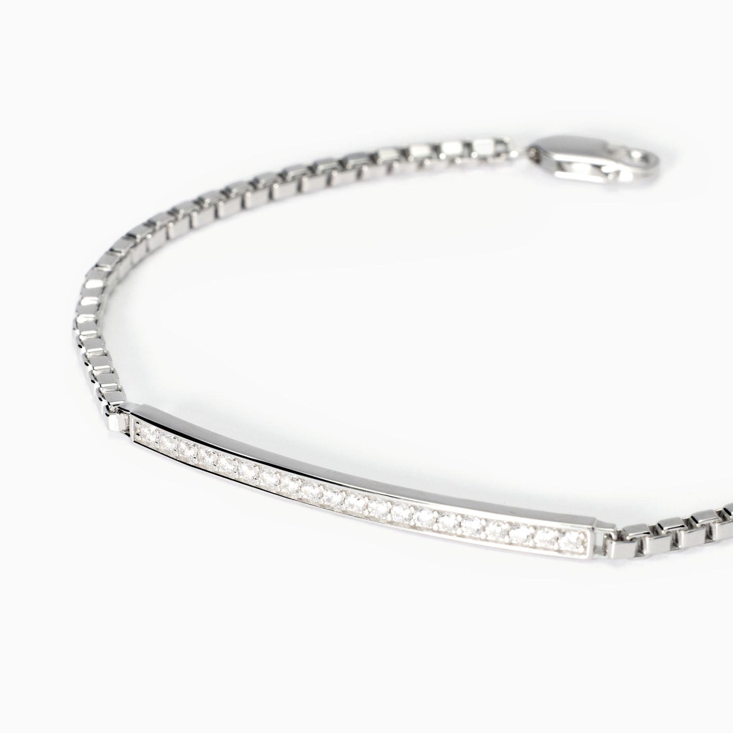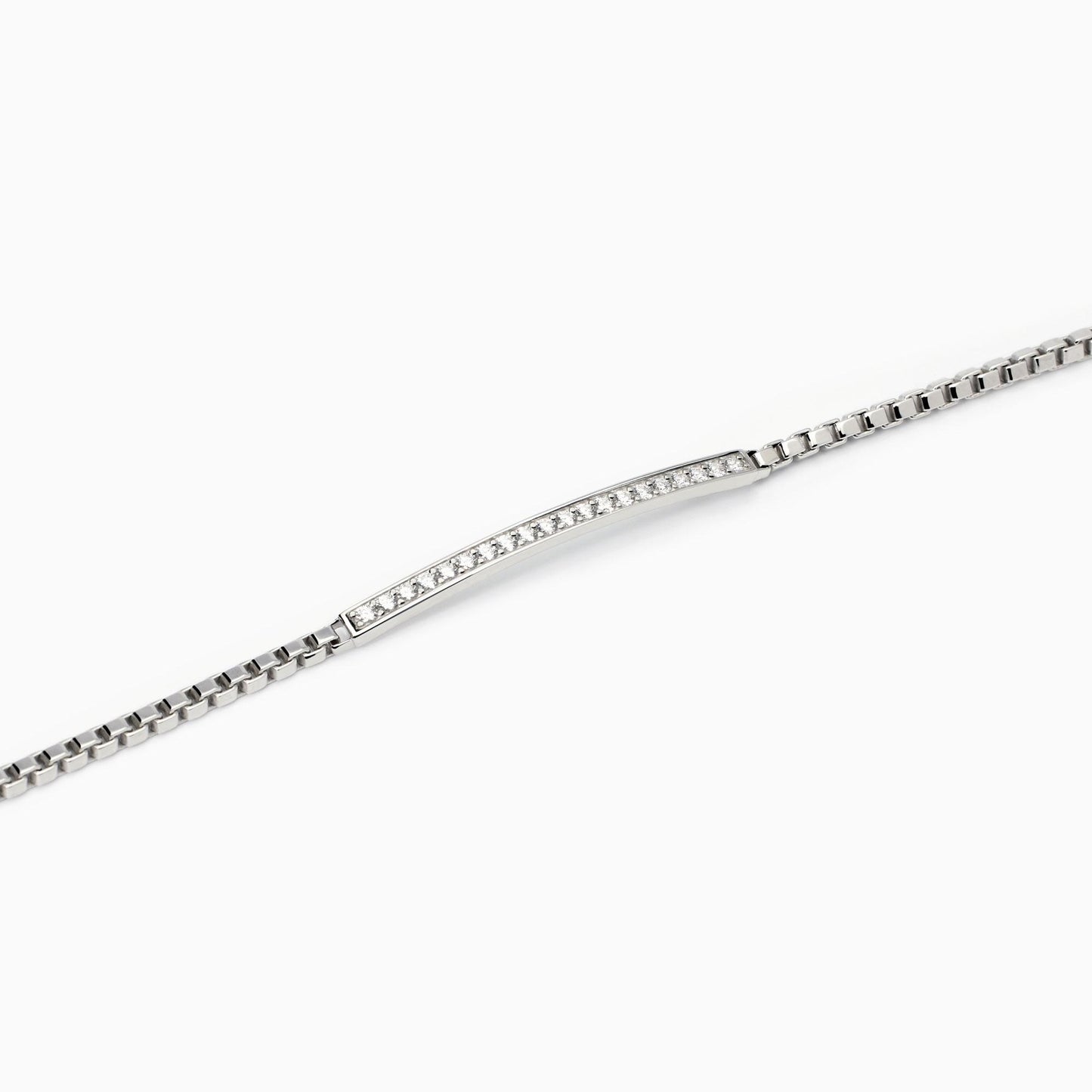 Bracciale regolabile da uomo in argento rodiato con catena veneta, piastra e zirconi bianchi.