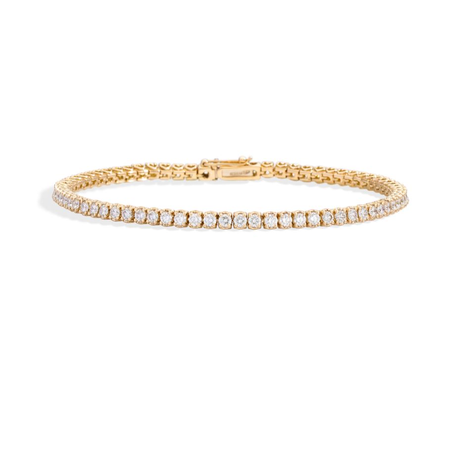 Bracciale tennis, oro giallo 18 kt e diamanti naturali taglio brillante.