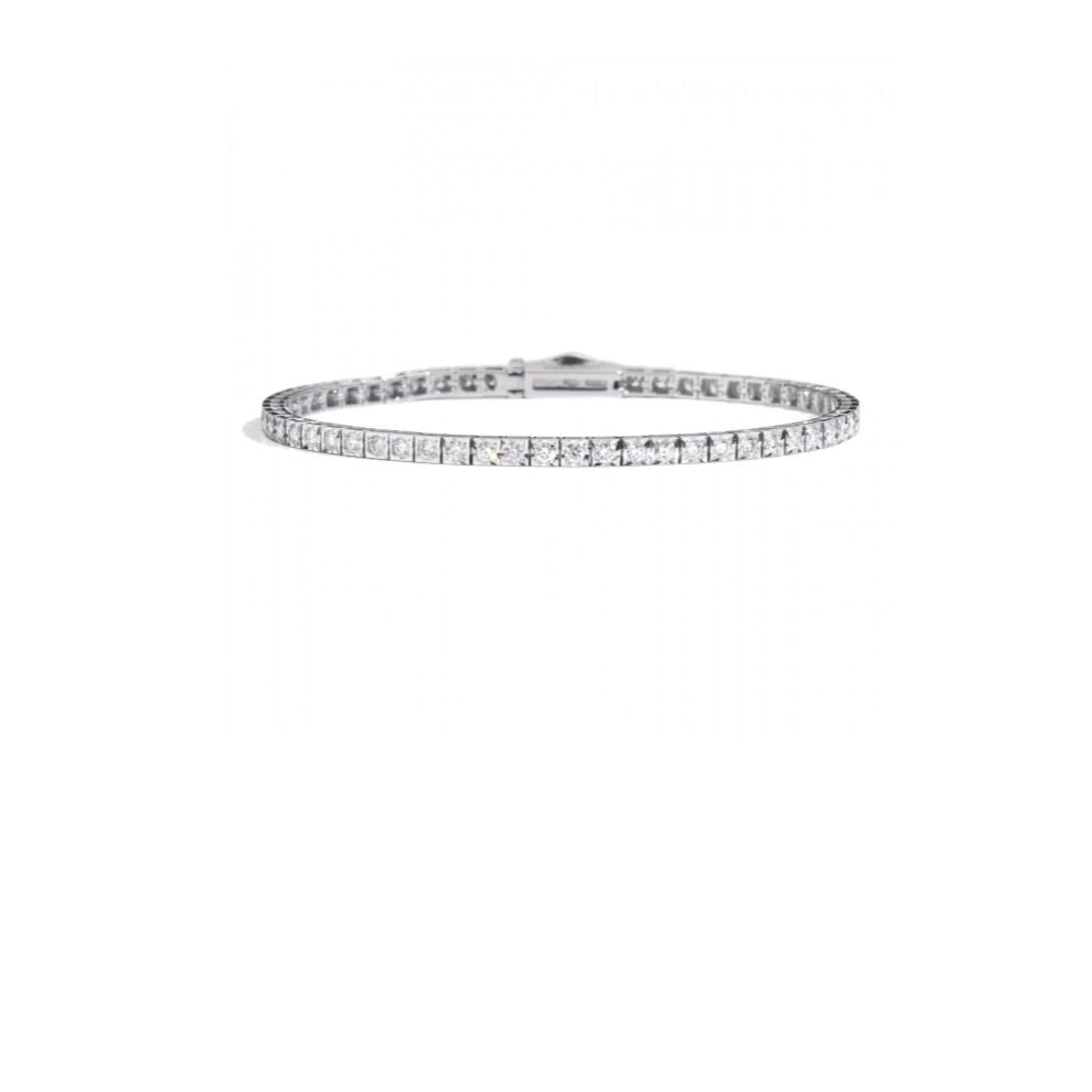 Bracciale tennis in oro bianco 18 kt e diamanti taglio brillante.