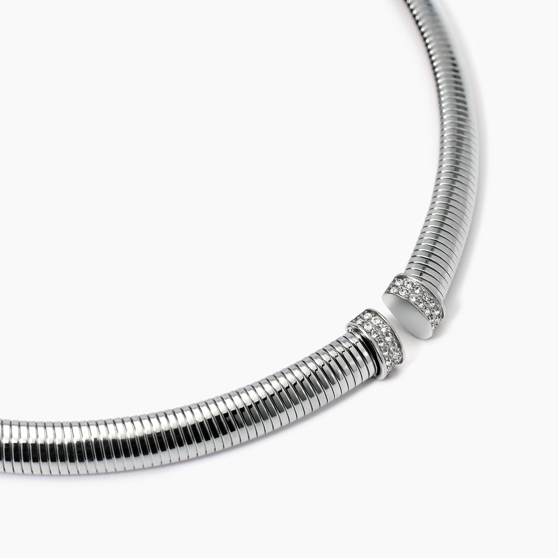 Girocollo in acciaio 316L con maglia tubogas in acciaio 304 con cristalli bianchi.
