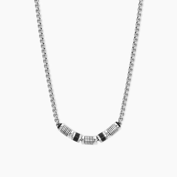 Collana in acciaio 316L con catena veneta 2 mm ed elemento 4.5 cm con PVD nero e silicone, lunghezza regolabile da 48 a 50 cm